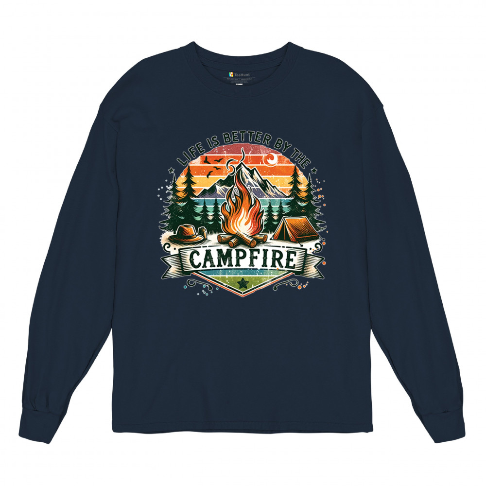 Life is Better by the Campfire brings rustic charm and outdoor adventure together with a glowing fire, mountain scenery, and pine forest. Ideal for forest lovers, campers, and national park explorers, this design evokes wilderness vibes, tent life, and the thrill of travel. Great value for anyone who believes adventure begins under the stars.