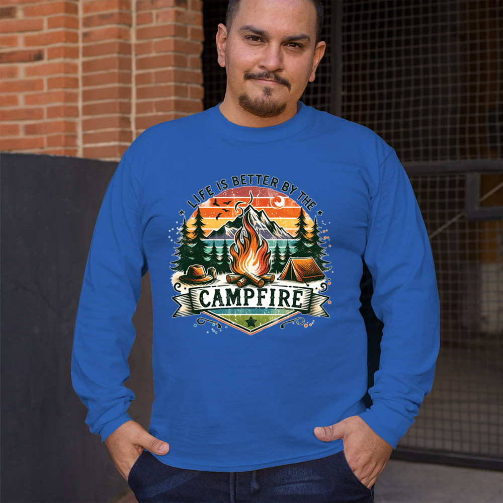 Life is Better by the Campfire captures outdoor adventure, wilderness vibes, campfire moments, and nature escapes for travel and camping fans.