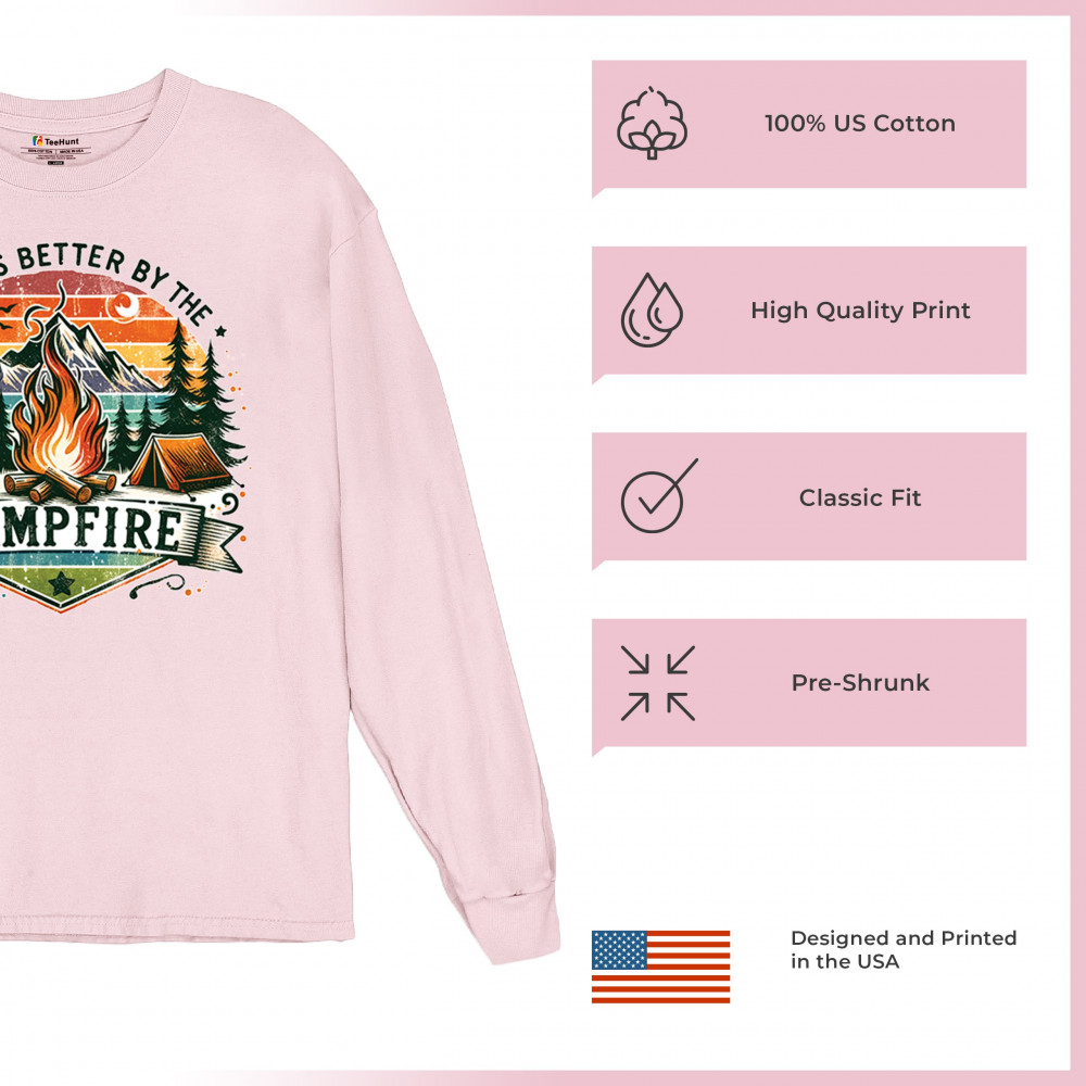 Life is Better by the Campfire brings rustic charm and outdoor adventure together with a glowing fire, mountain scenery, and pine forest. Ideal for forest lovers, campers, and national park explorers, this design evokes wilderness vibes, tent life, and the thrill of travel. Great value for anyone who believes adventure begins under the stars.