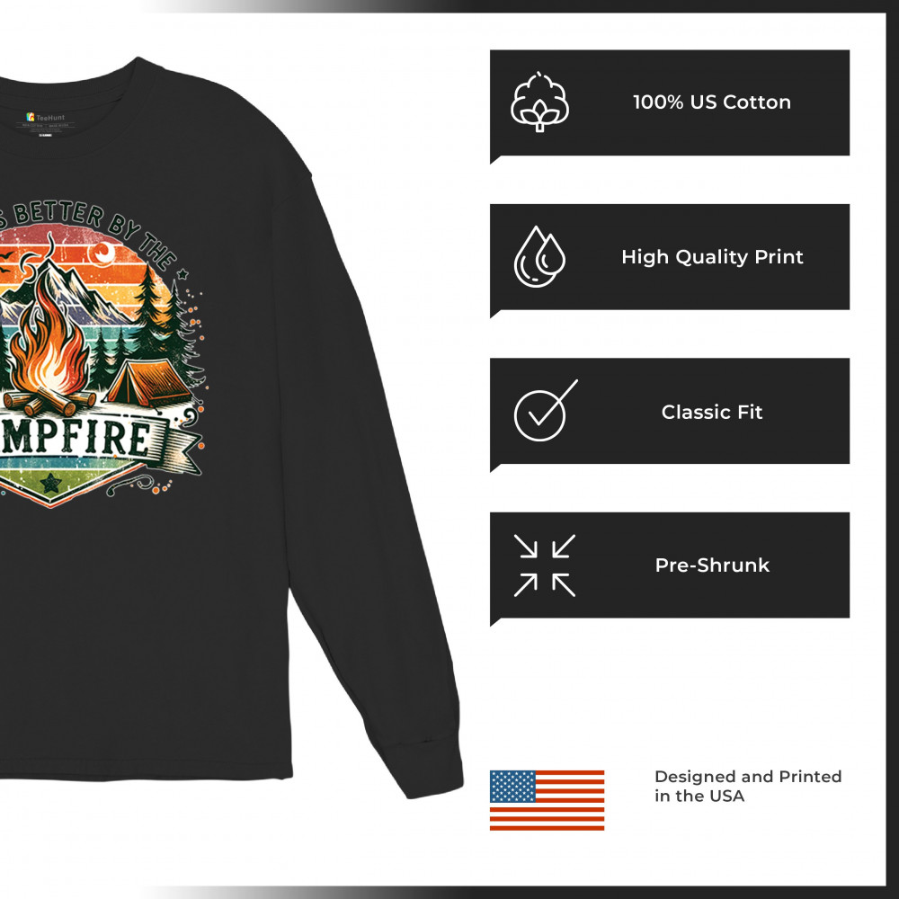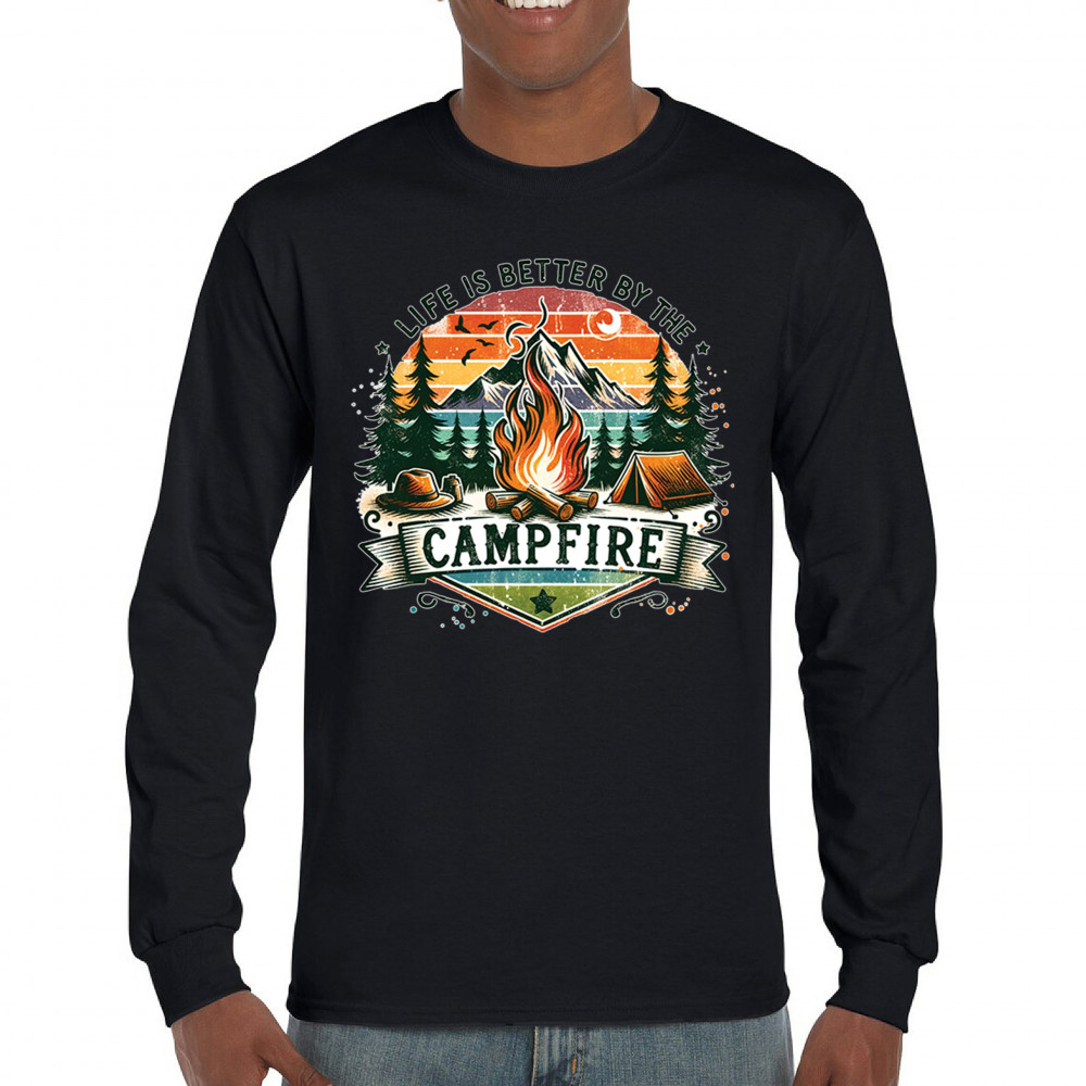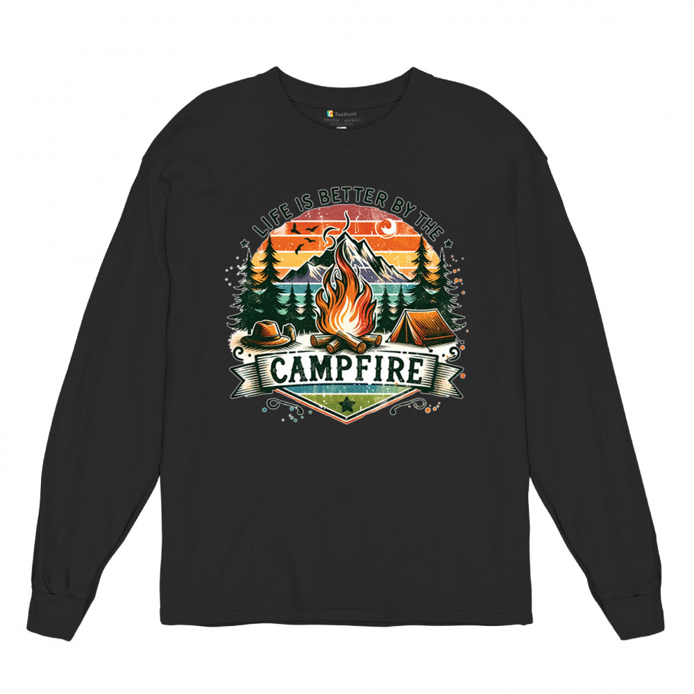 Life is Better by the Campfire brings rustic charm and outdoor adventure together with a glowing fire, mountain scenery, and pine forest. Ideal for forest lovers, campers, and national park explorers, this design evokes wilderness vibes, tent life, and the thrill of travel. Great value for anyone who believes adventure begins under the stars.