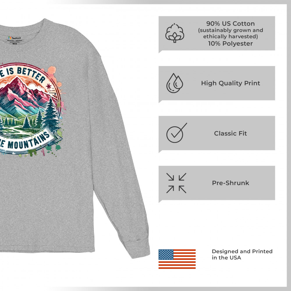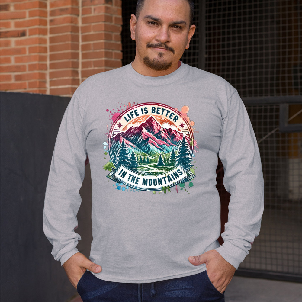 Life Is Better in the Mountains is designed for nature lovers, campers, and trail hikers who find peace in high altitudes. This colorful mountain scene captures wilderness vibes, camping escapes, and weekend hiking energy. Ideal for forest lovers, off-grid adventurers, and glamping fans alike.