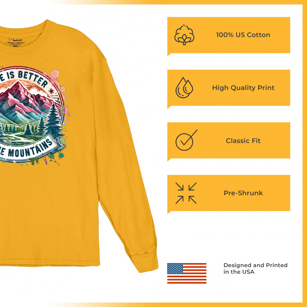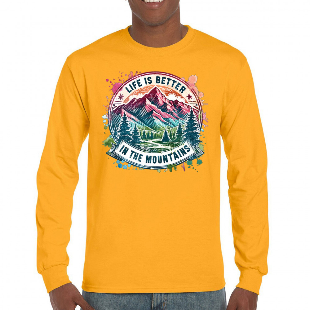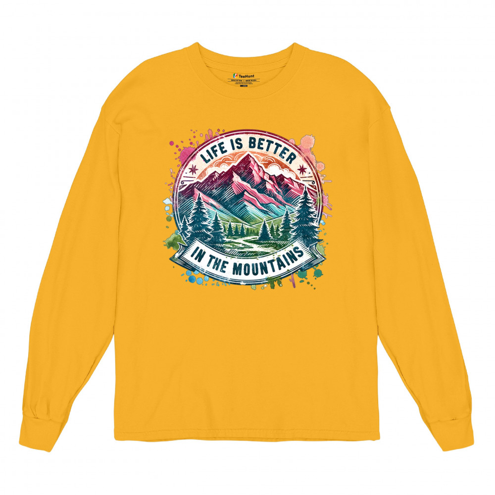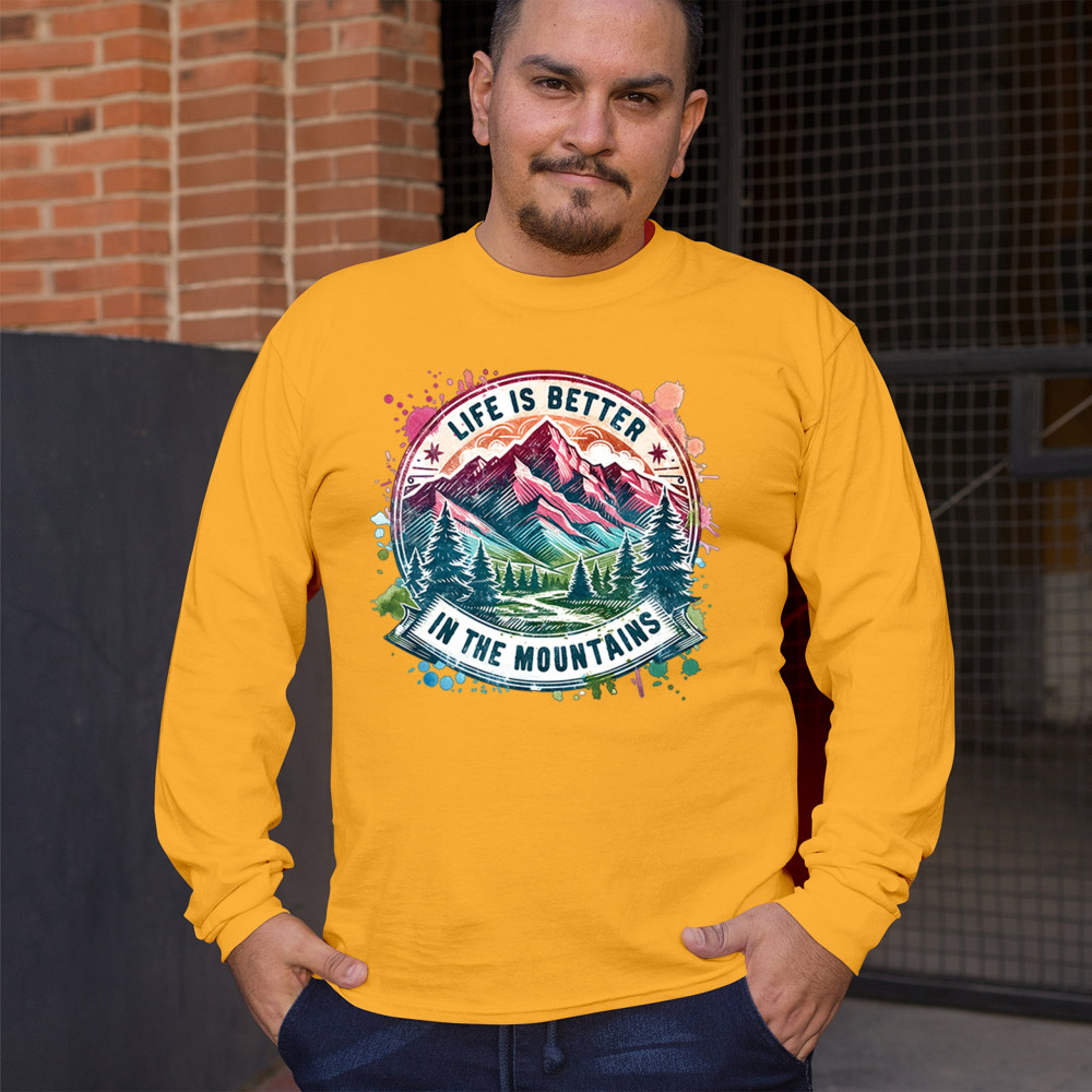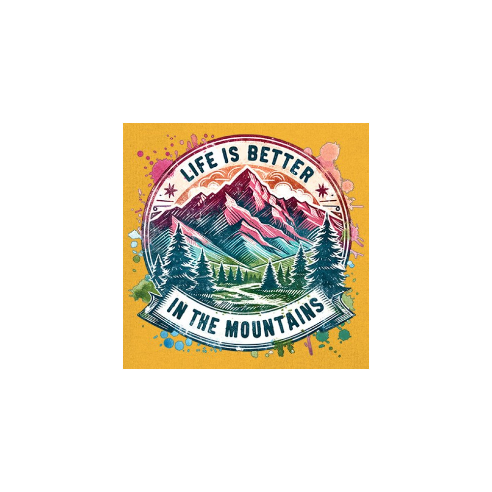 Life Is Better in the Mountains is designed for nature lovers, campers, and trail hikers who find peace in high altitudes. This colorful mountain scene captures wilderness vibes, camping escapes, and weekend hiking energy. Ideal for forest lovers, off-grid adventurers, and glamping fans alike.