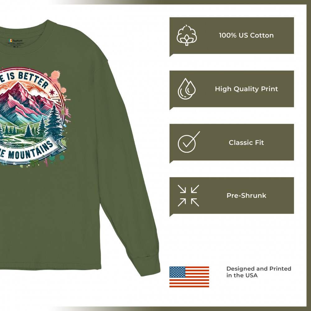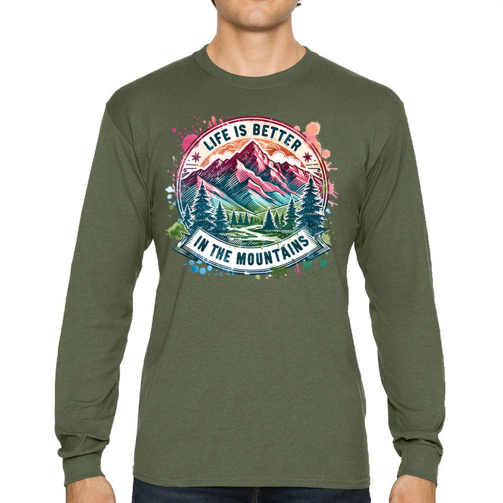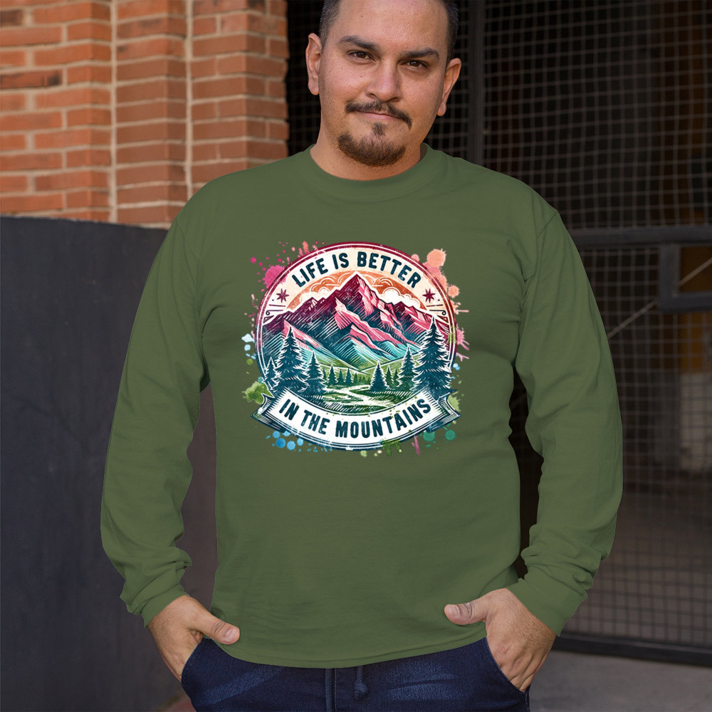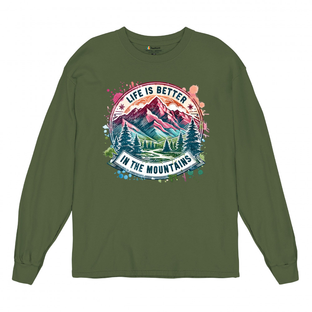 Life Is Better in the Mountains is designed for nature lovers, campers, and trail hikers who find peace in high altitudes. This colorful mountain scene captures wilderness vibes, camping escapes, and weekend hiking energy. Ideal for forest lovers, off-grid adventurers, and glamping fans alike.