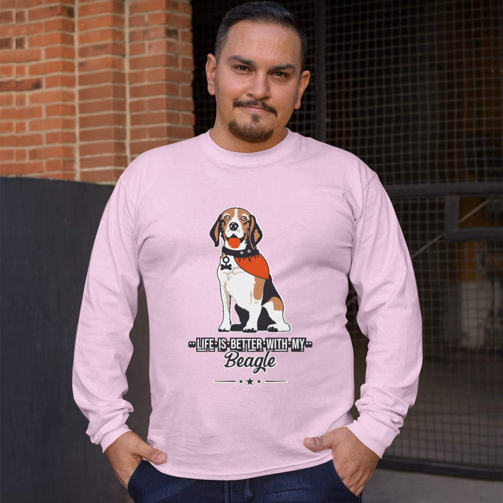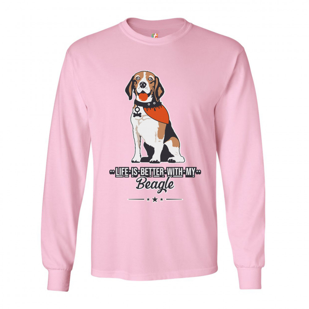 LIFE IS BETTER WITH MY BEAGLE long sleeve t-shirt i love my dog best friend pink