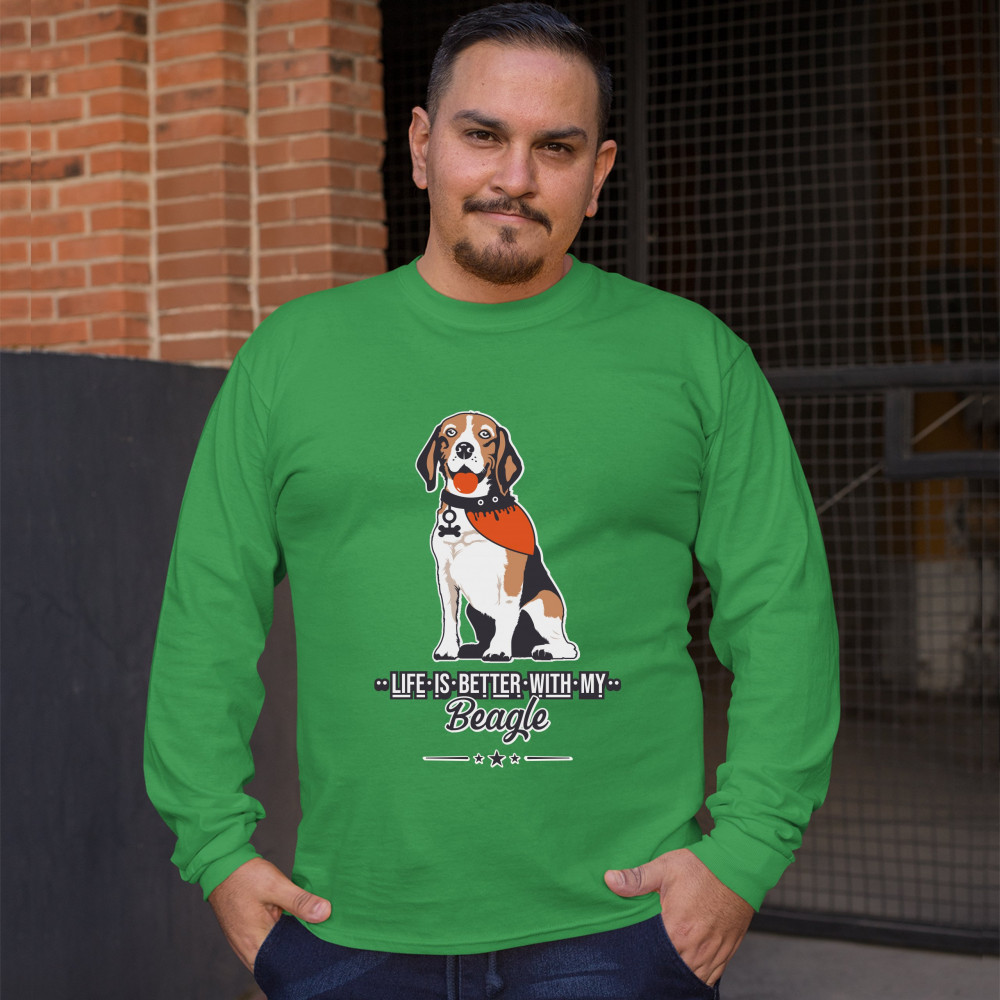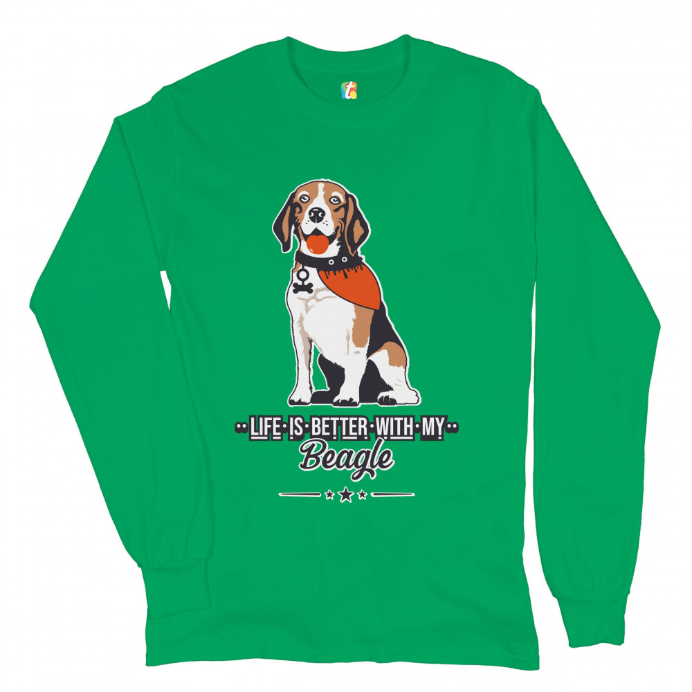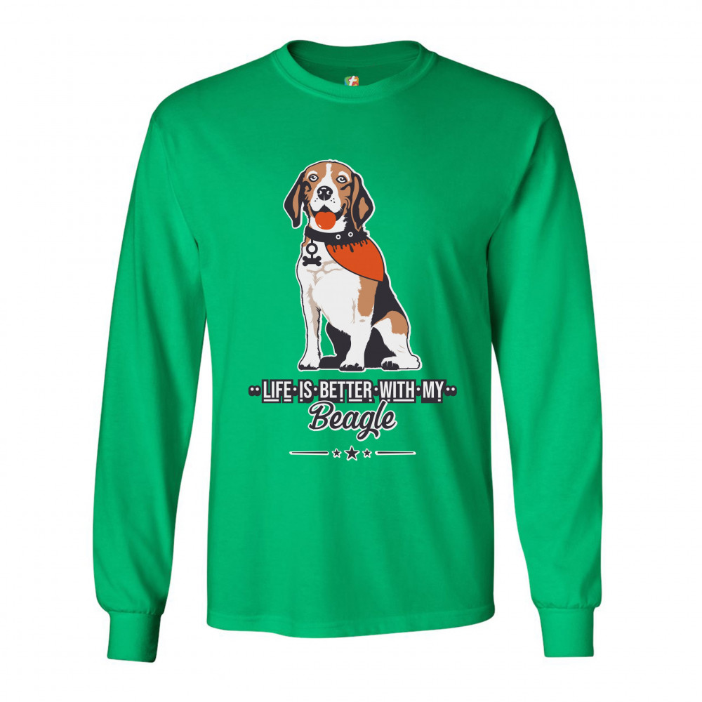 LIFE IS BETTER WITH MY BEAGLE long sleeve t-shirt i love my dog best friend green