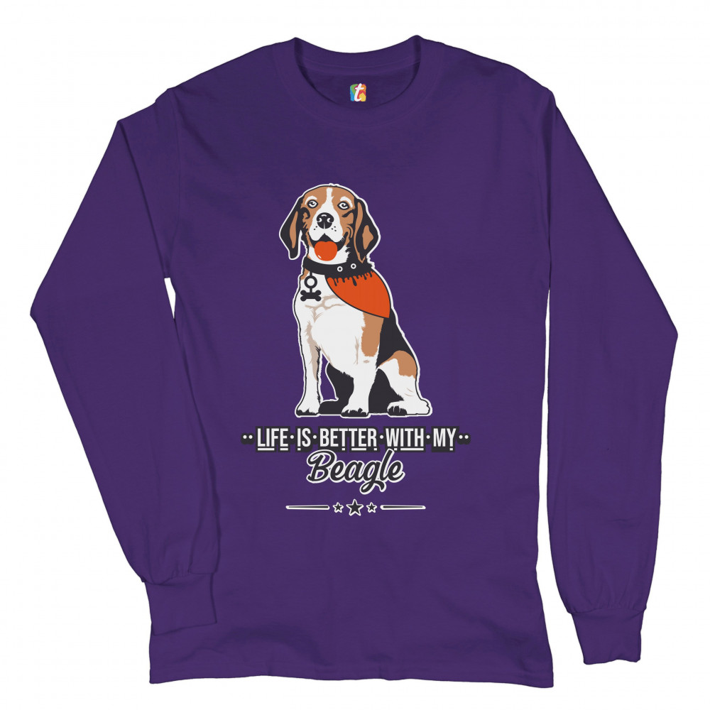 LIFE IS BETTER WITH MY BEAGLE long sleeve t-shirt i love my dog best friend purple