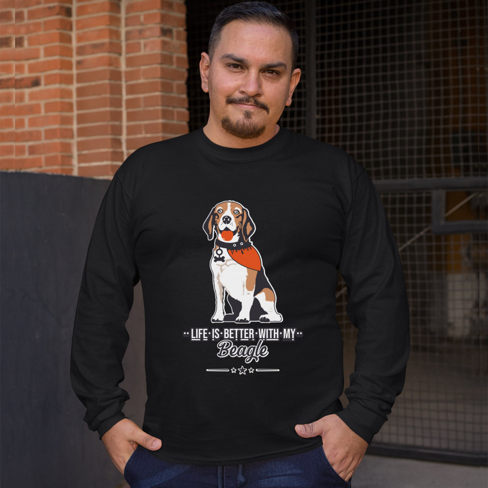 LIFE IS BETTER WITH MY BEAGLE long sleeve t-shirt i love my dog best friend black