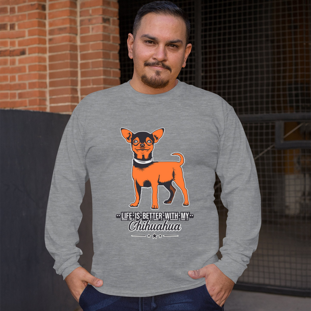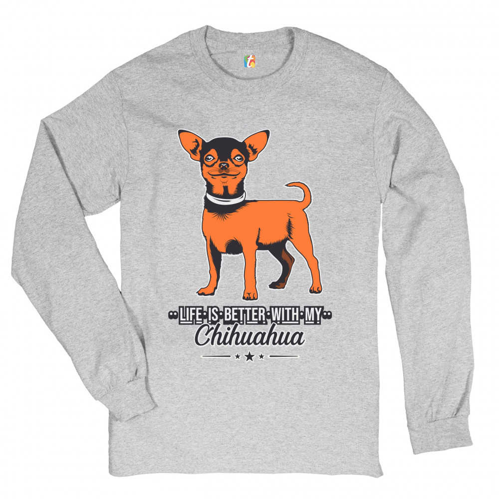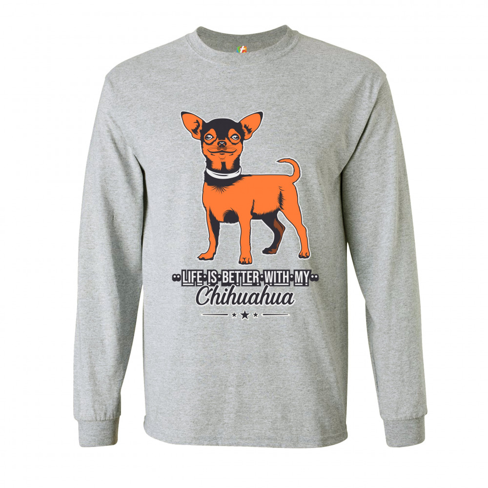 LIFE IS BETTER WITH MY CHIHUAHUA long sleeve t-shirt toy dog lover cute pet gray
