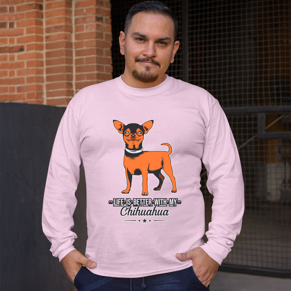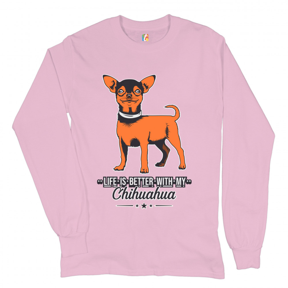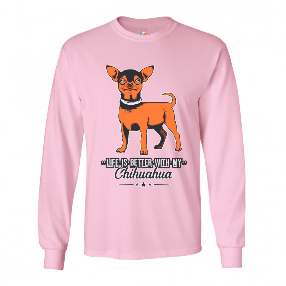 LIFE IS BETTER WITH MY CHIHUAHUA long sleeve t-shirt toy dog lover cute pet pink