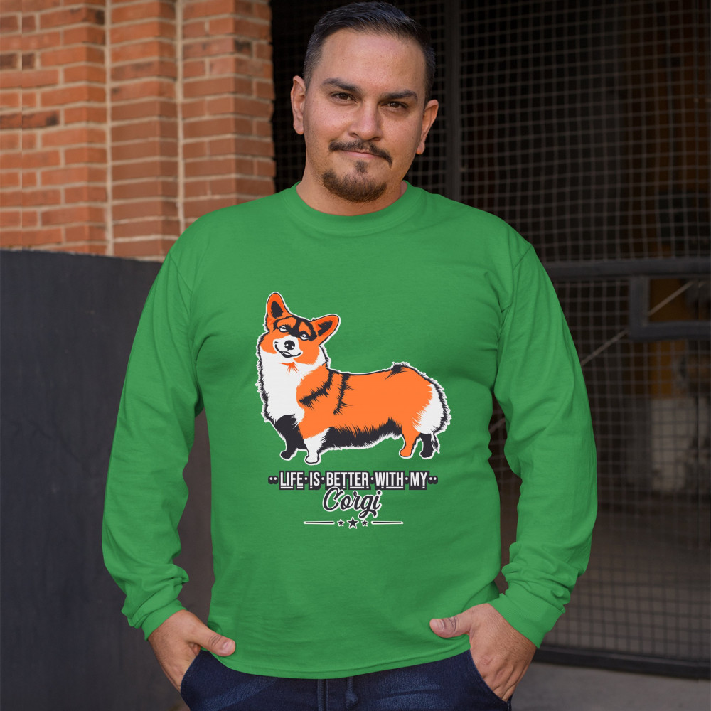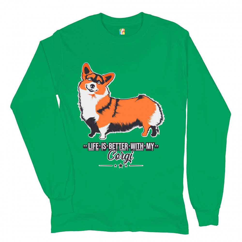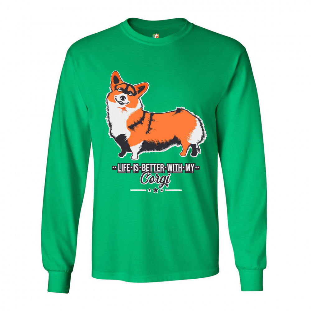 LIFE IS BETTER WITH MY CORGI long sleeve t-shirt pet best friend dog lover green
