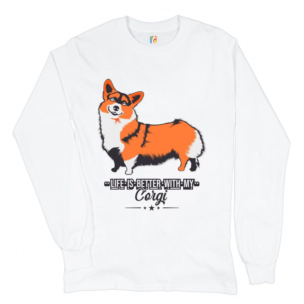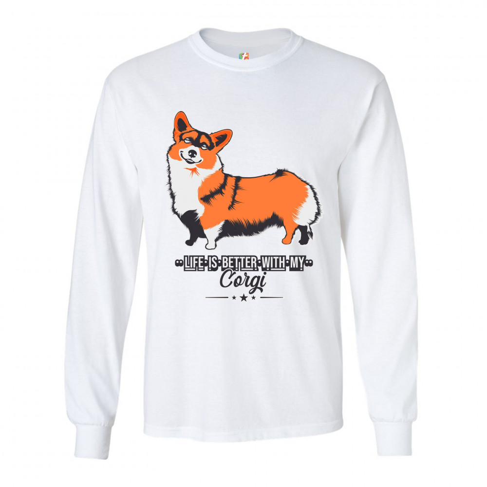 LIFE IS BETTER WITH MY CORGI long sleeve t-shirt pet best friend dog lover white