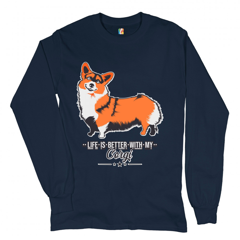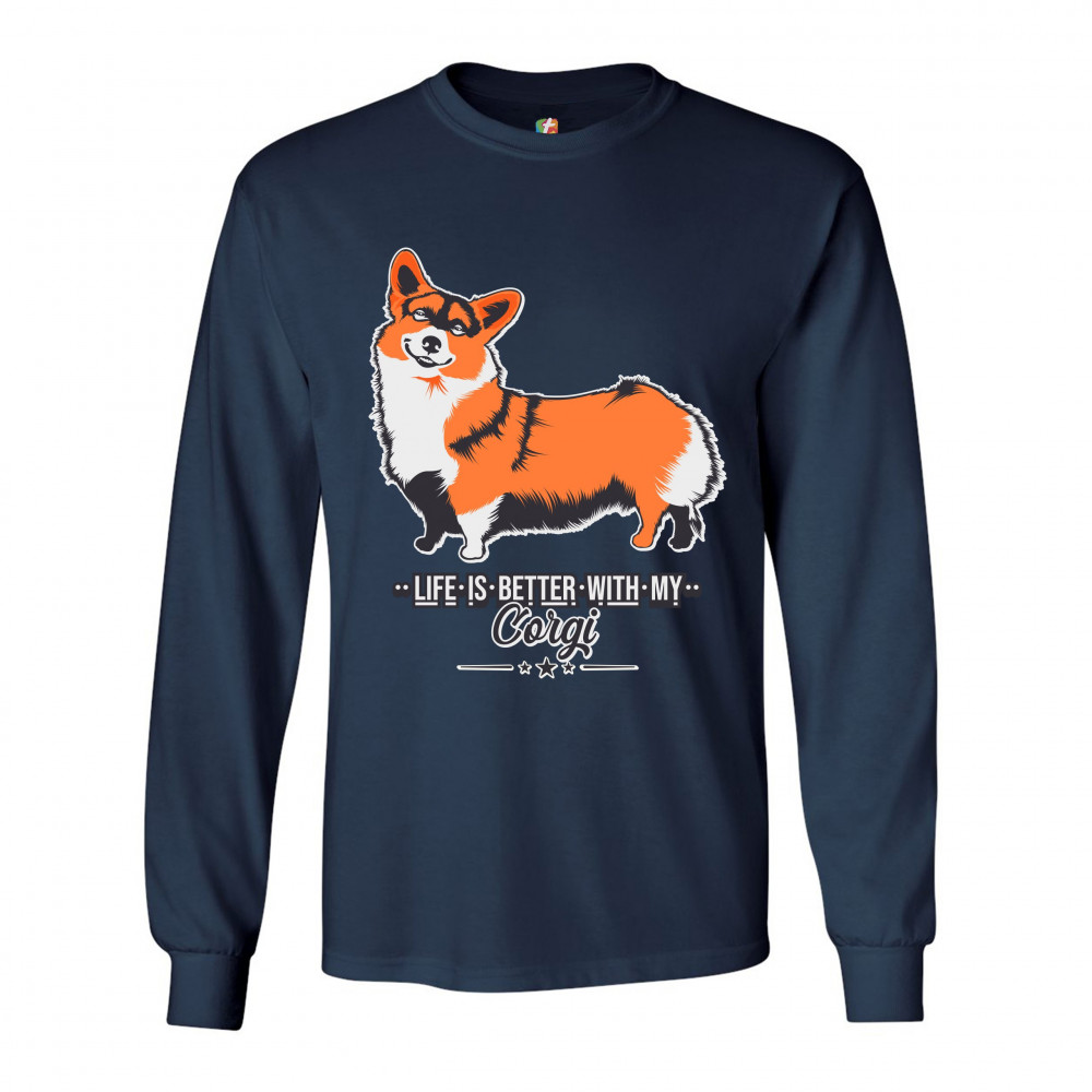 LIFE IS BETTER WITH MY CORGI long sleeve t-shirt pet best friend dog lover navy blue
