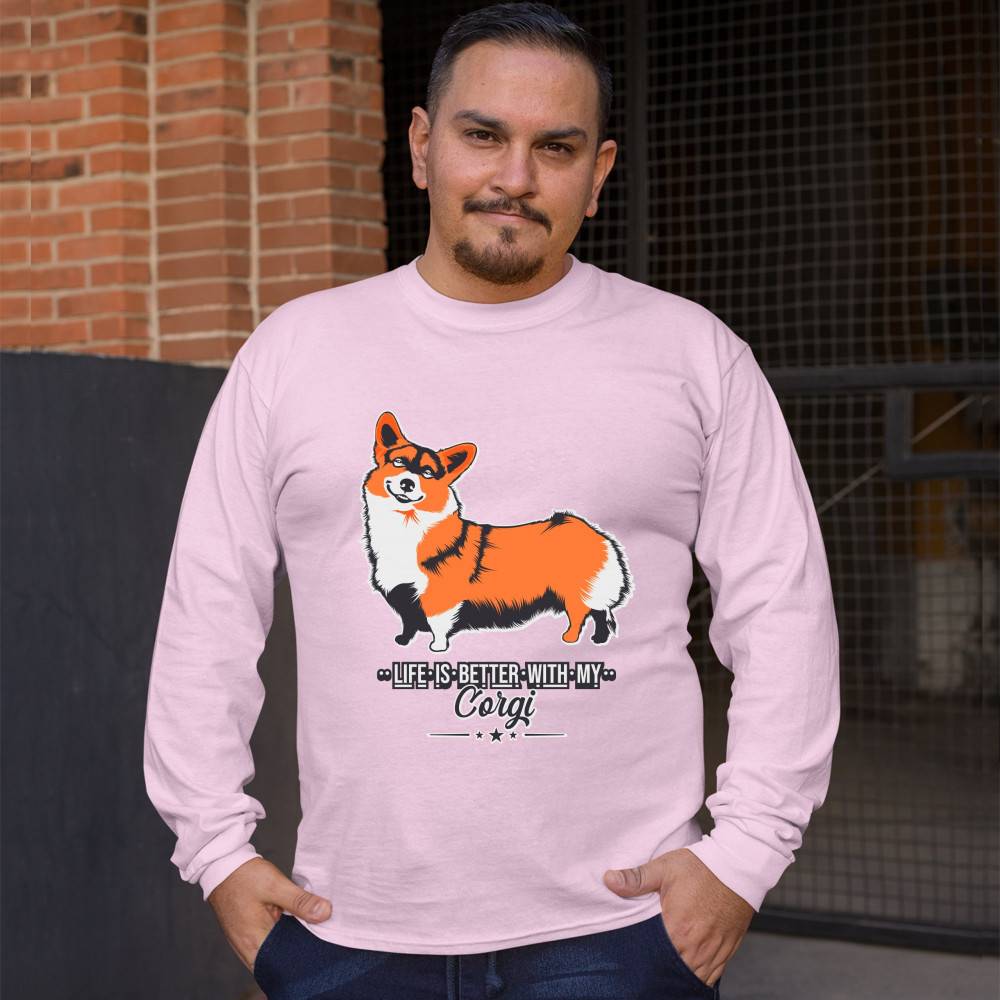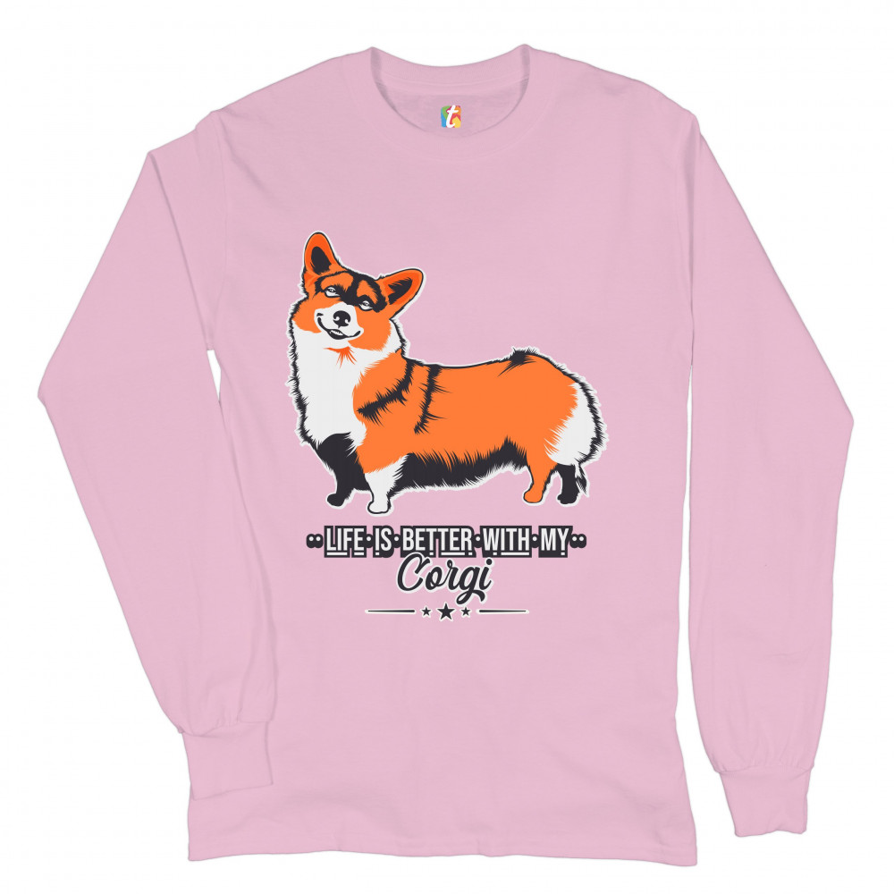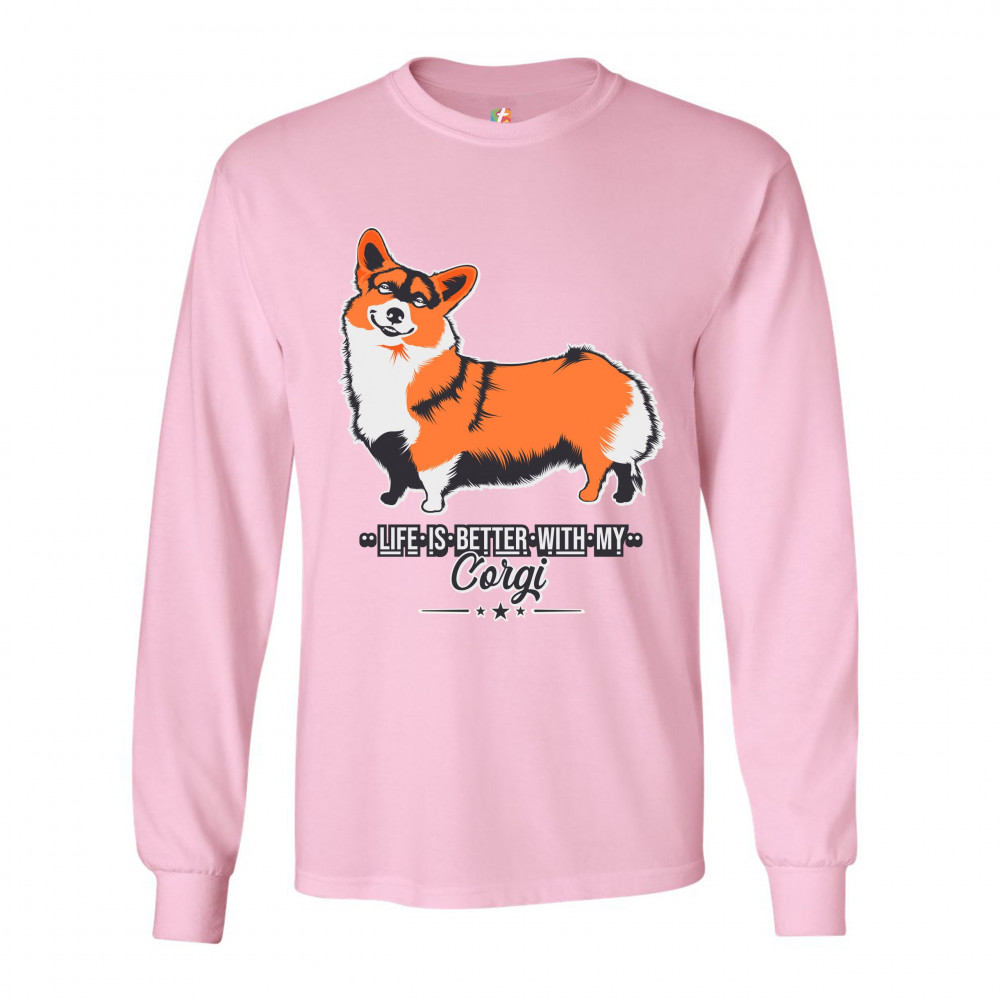 LIFE IS BETTER WITH MY CORGI long sleeve t-shirt pet best friend dog lover pink