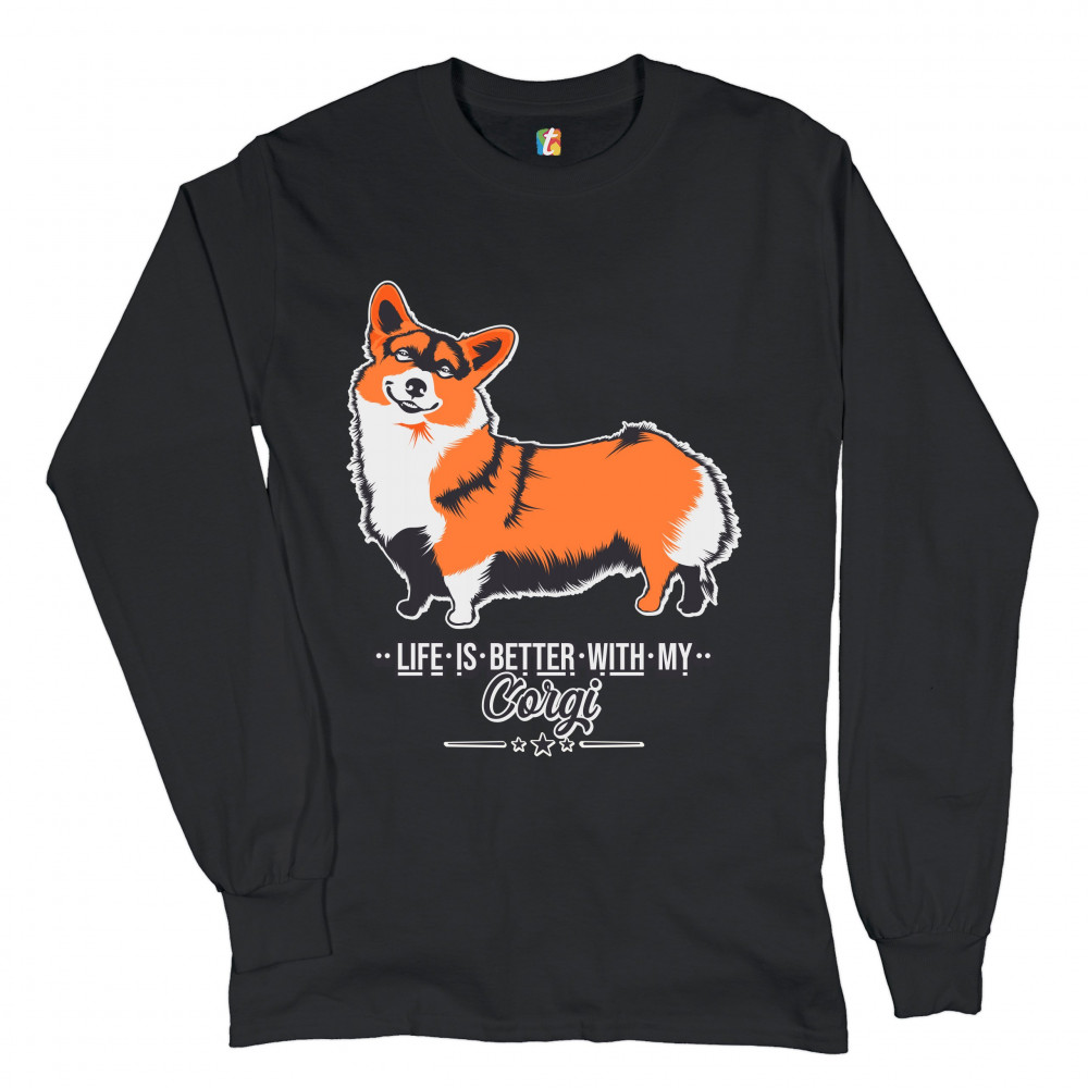 LIFE IS BETTER WITH MY CORGI long sleeve t-shirt pet best friend dog lover black