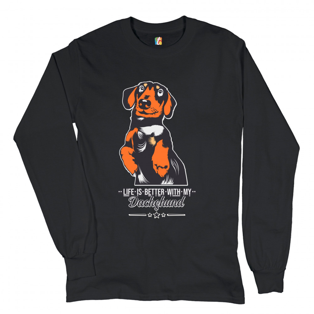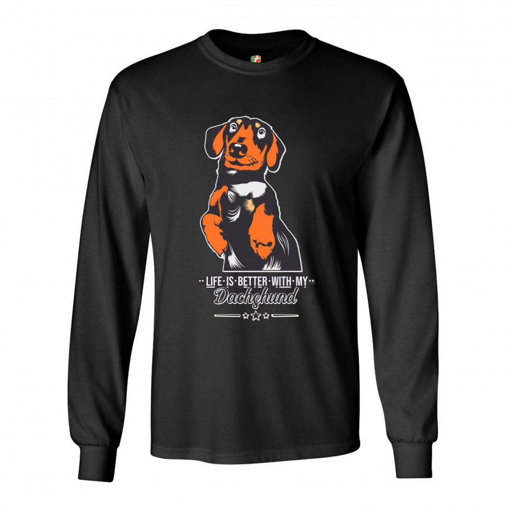 LIFE IS BETTER WITH MY DACHSUND long sleeve t-shirt pet lover i love my dog black