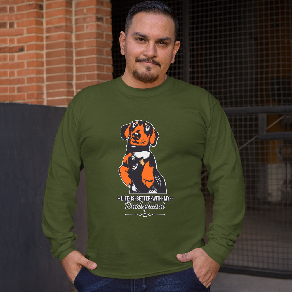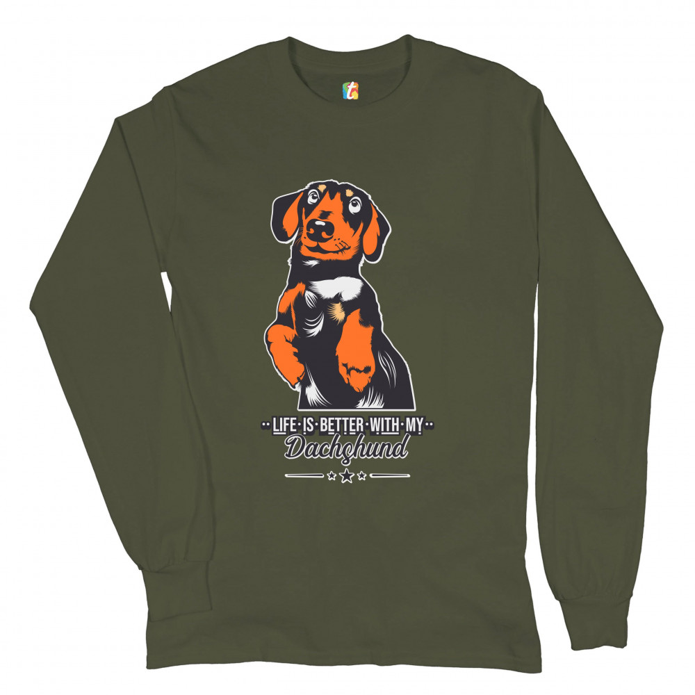 LIFE IS BETTER WITH MY DACHSUND long sleeve t-shirt pet lover i love my dog military green