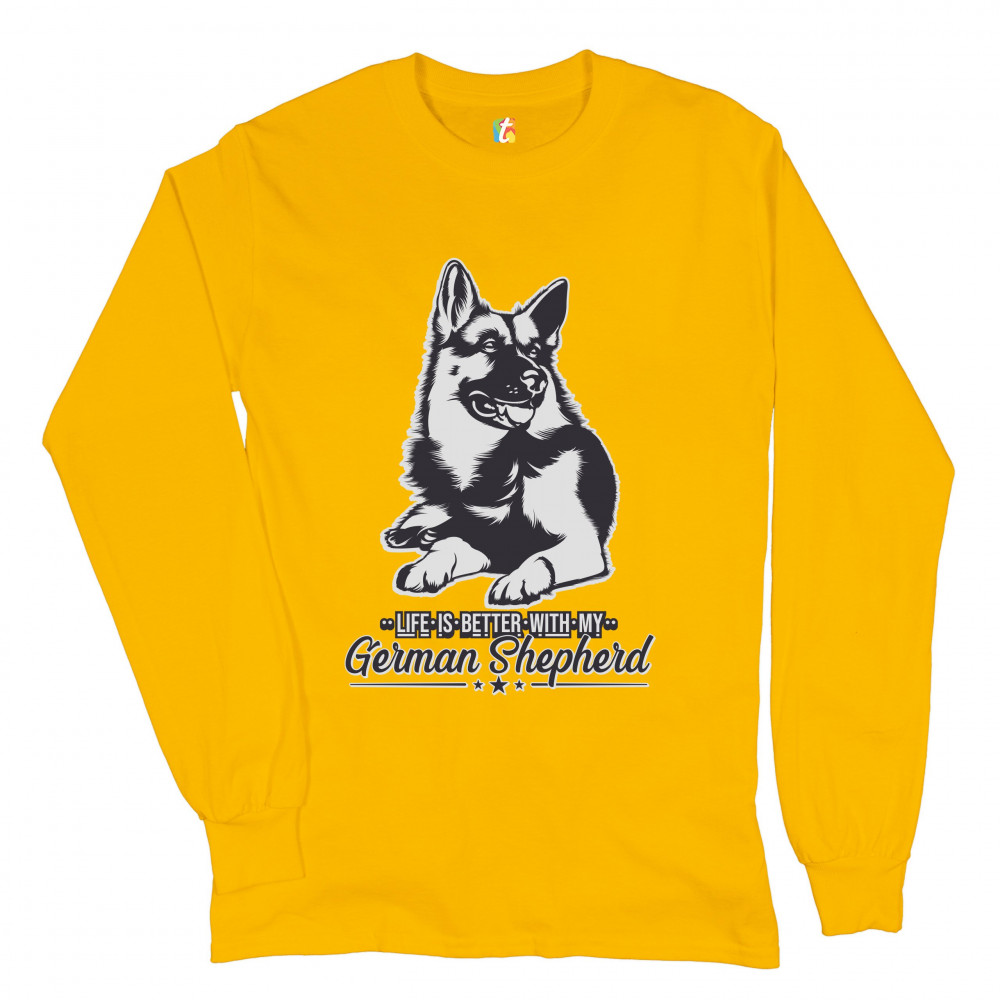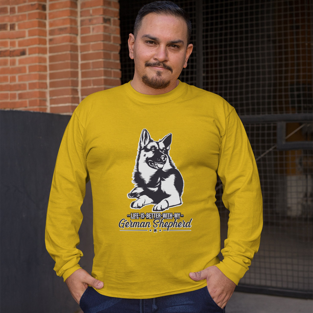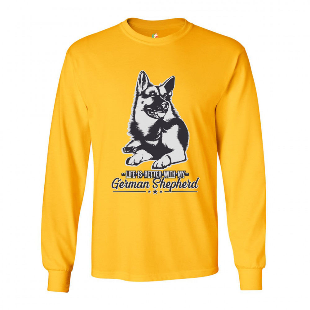 LIFE IS BETTER WITH MY GERMAN SHEPHERD long sleeve t-shirt dog lover pet yellow