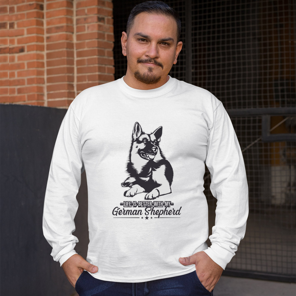 LIFE IS BETTER WITH MY GERMAN SHEPHERD long sleeve t-shirt dog lover pet white