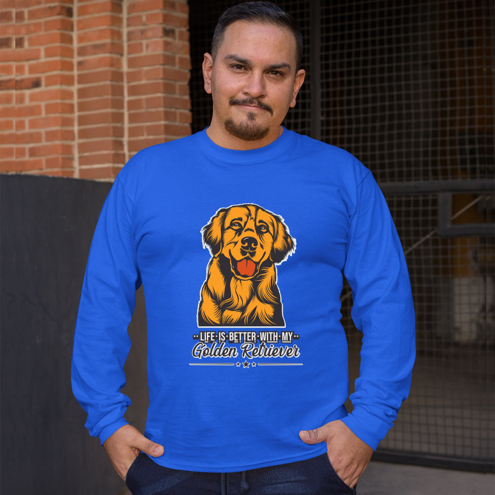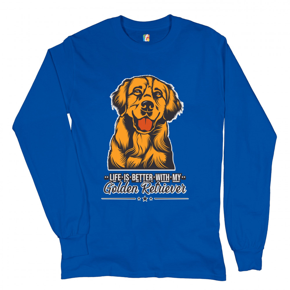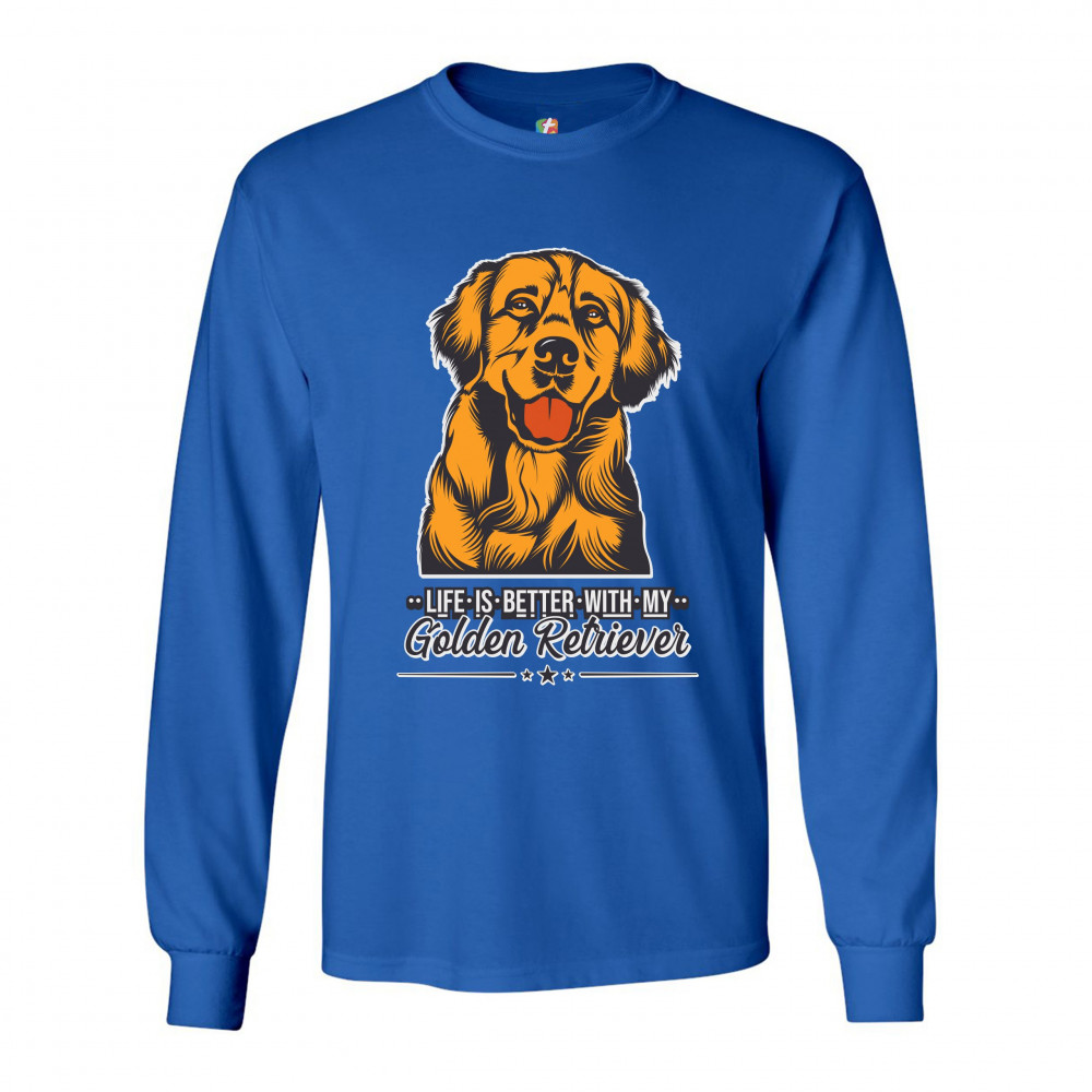 LIFE IS BETTER WITH MY GOLDEN RETRIEVER long sleeve t-shirt puppy dog owner royal blue