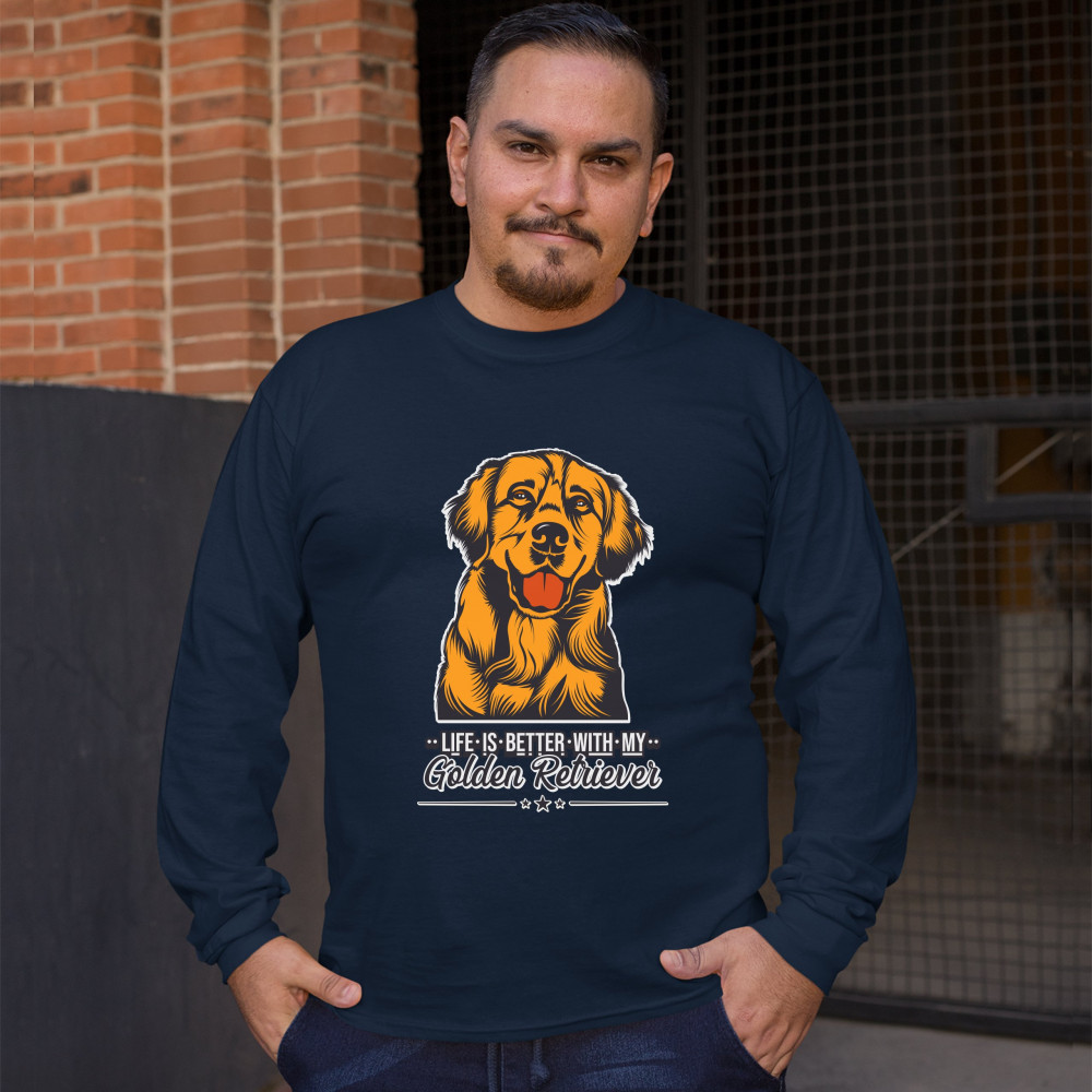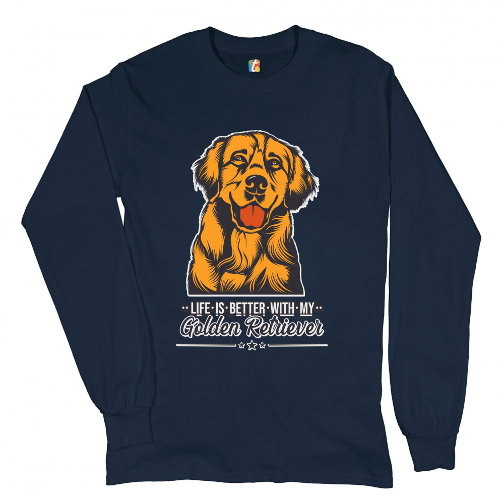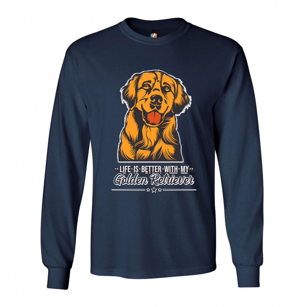 LIFE IS BETTER WITH MY GOLDEN RETRIEVER long sleeve t-shirt puppy dog owner navy blue