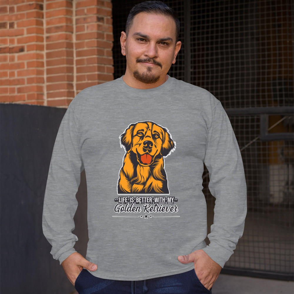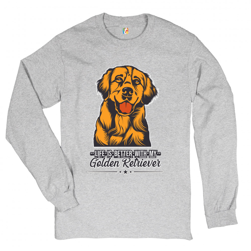 LIFE IS BETTER WITH MY GOLDEN RETRIEVER long sleeve t-shirt puppy dog owner gray