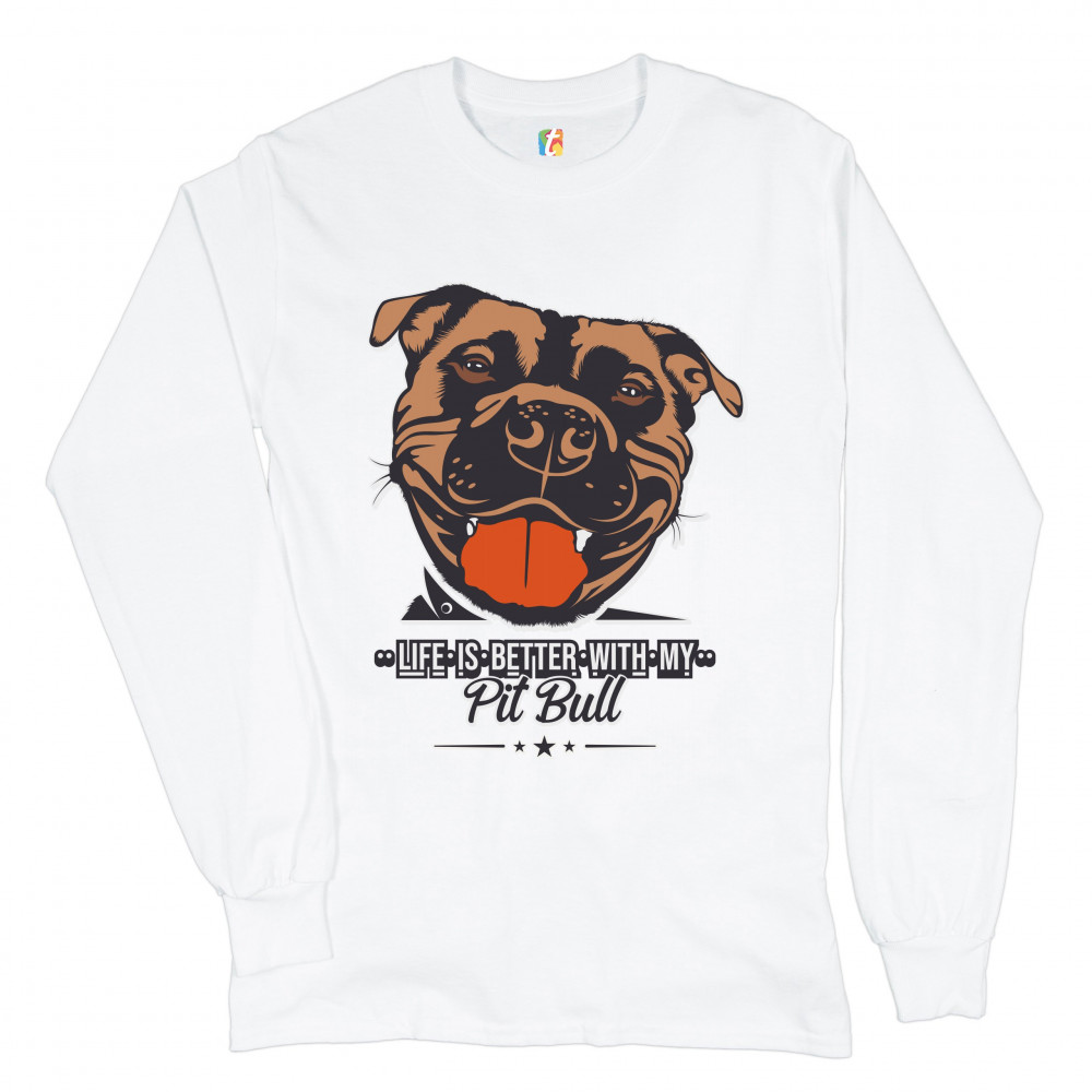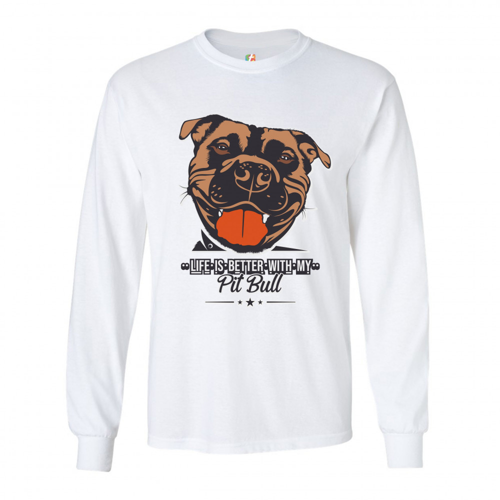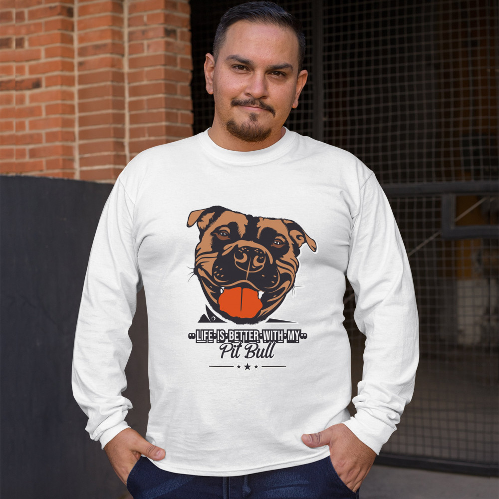LIFE IS BETTER WITH MY PIT BULL long sleeve t-shirt i love me dog animal lover white