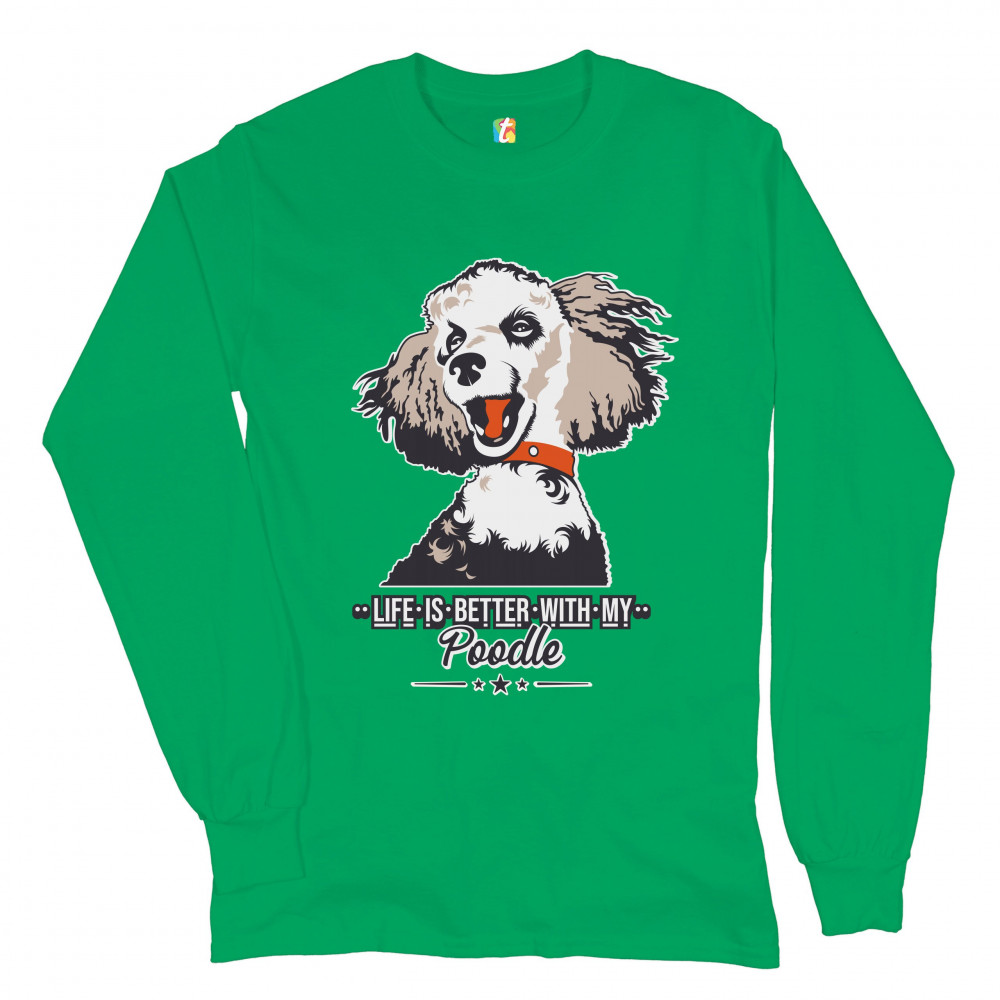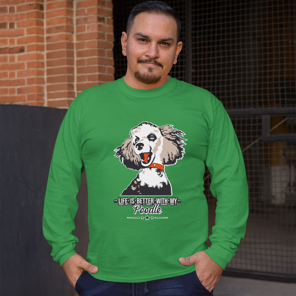 LIFE IS BETTER WITH MY POODLE long sleeve t-shirt cute puppy dog lover pet green