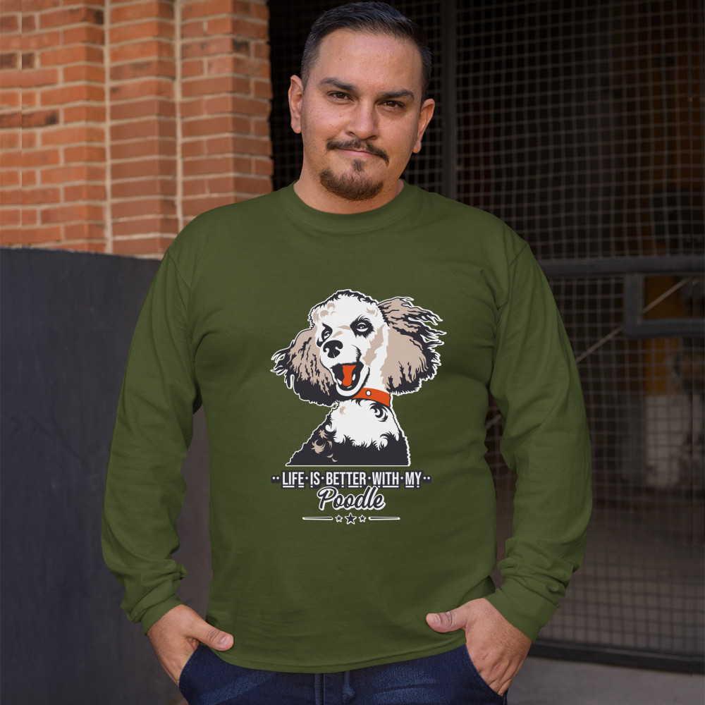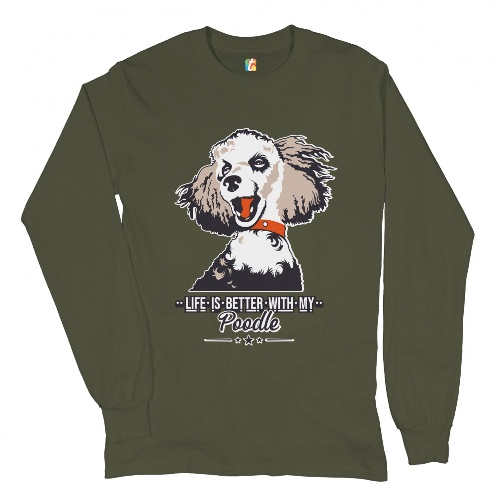 LIFE IS BETTER WITH MY POODLE long sleeve t-shirt cute puppy dog lover pet military green