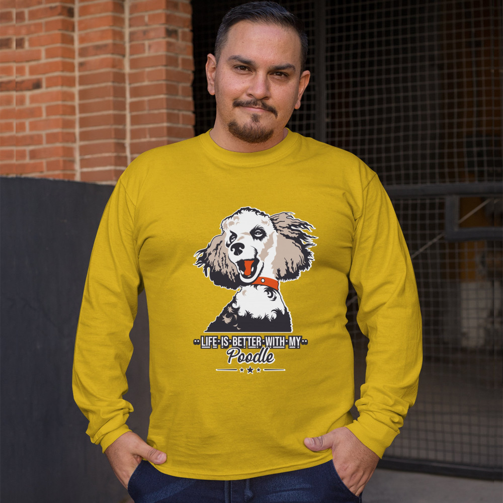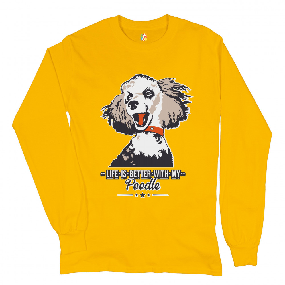 LIFE IS BETTER WITH MY POODLE long sleeve t-shirt cute puppy dog lover pet yellow