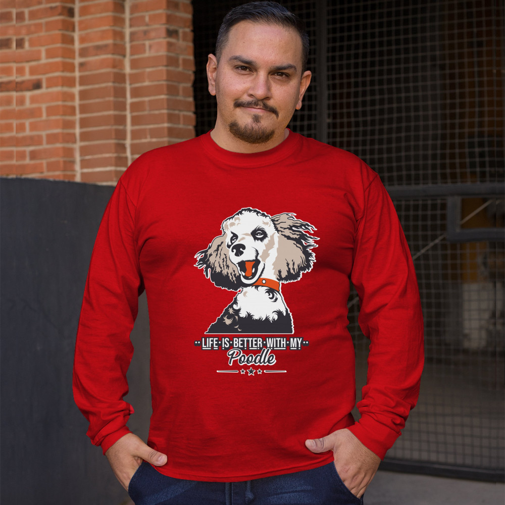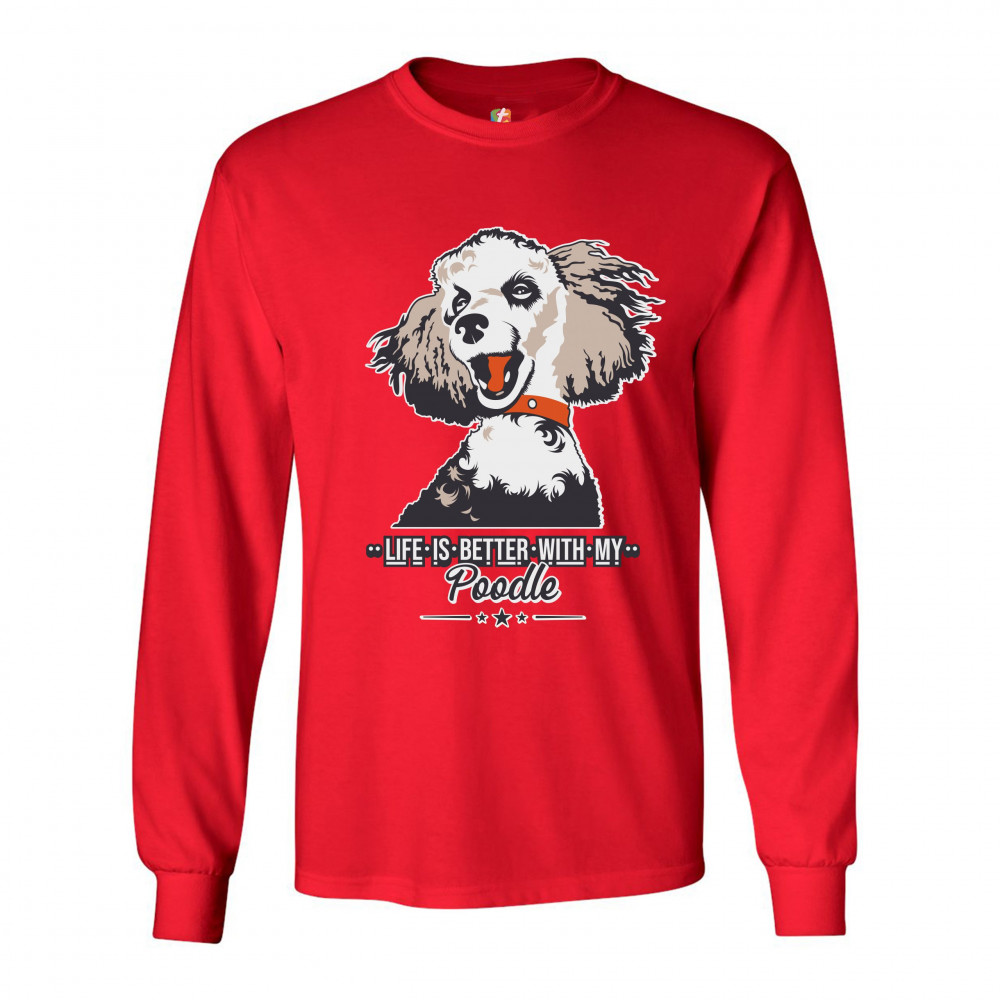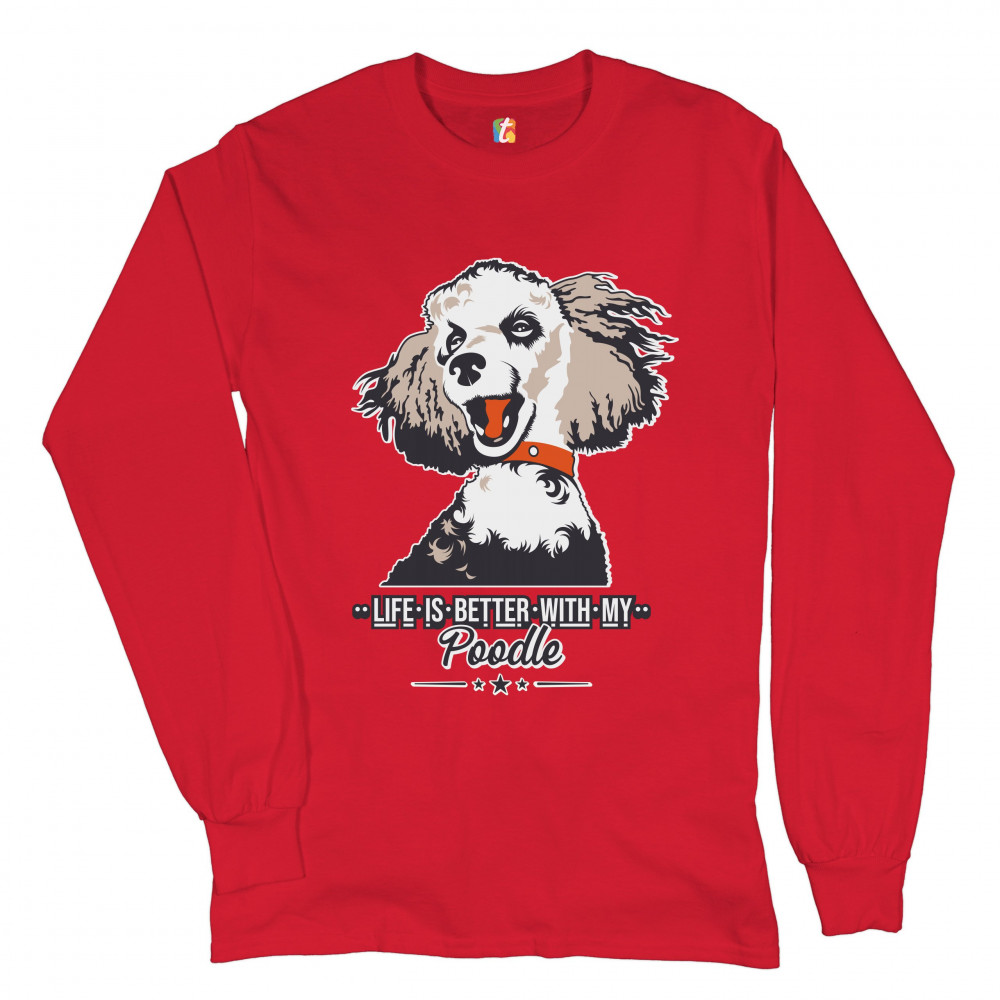 LIFE IS BETTER WITH MY POODLE long sleeve t-shirt cute puppy dog lover pet red