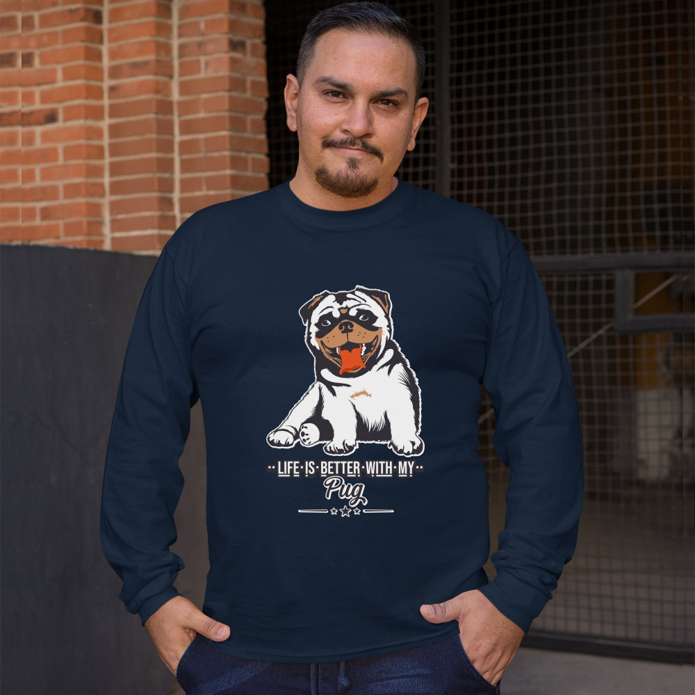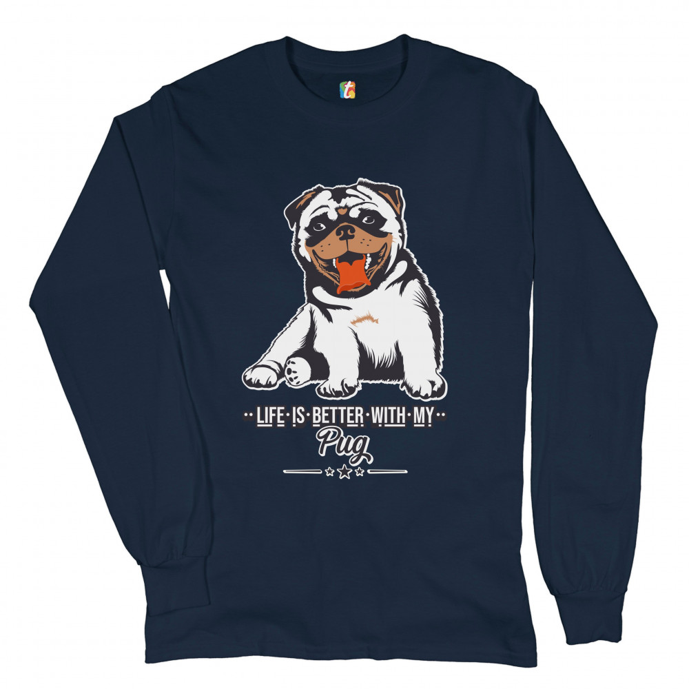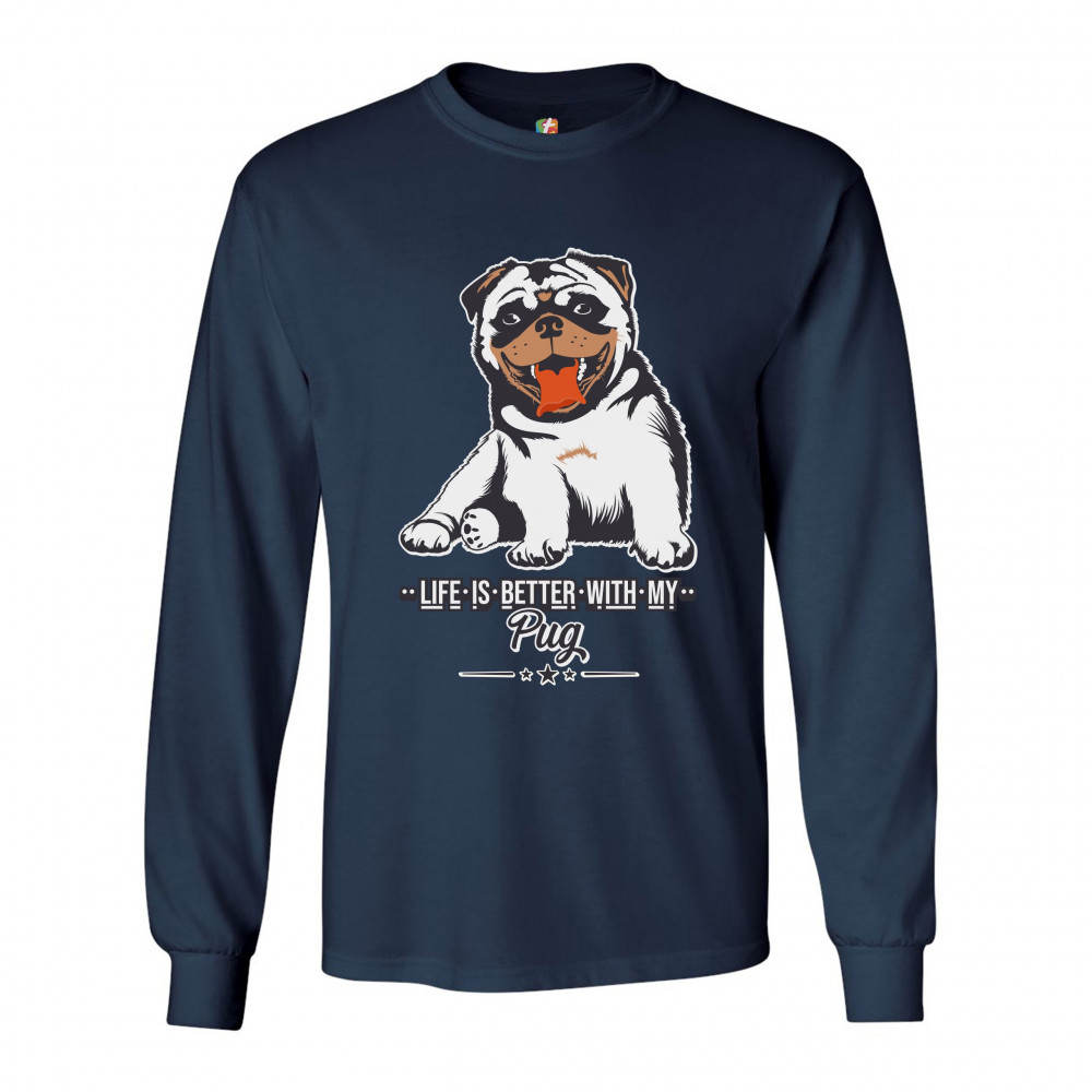LIFE IS BETTER WITH MY PUG long sleeve t-shirt cute pet adorable dog breed navy blue