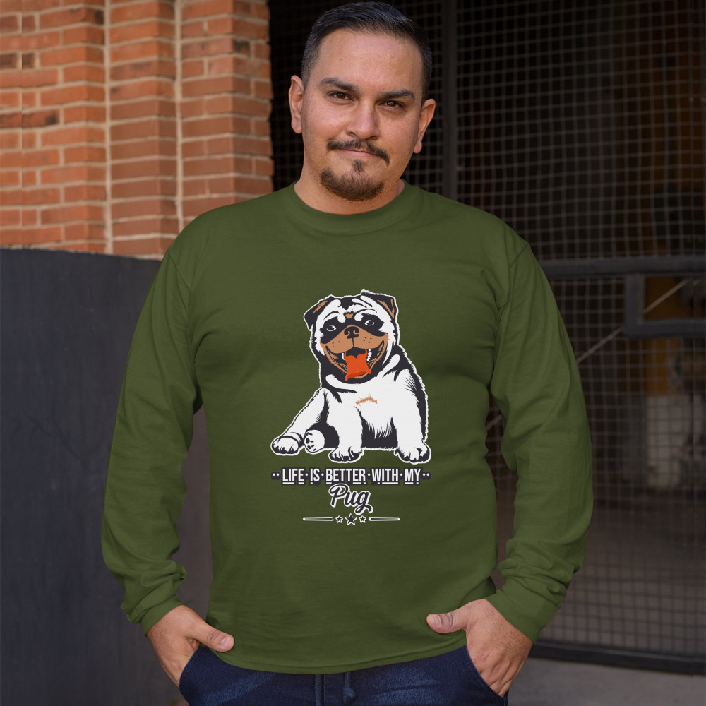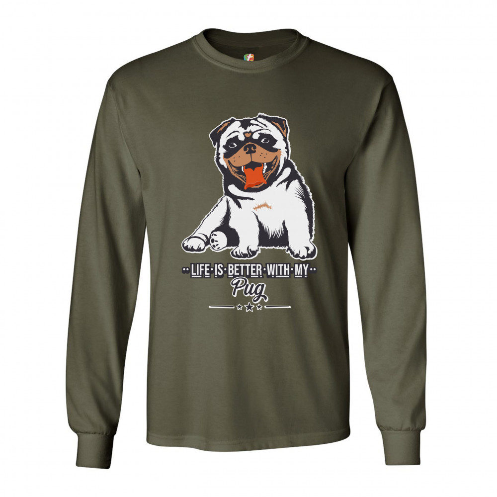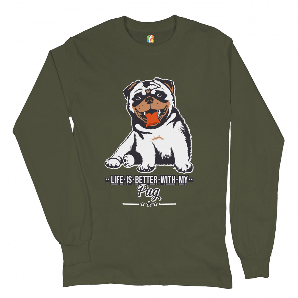 LIFE IS BETTER WITH MY PUG long sleeve t-shirt cute pet adorable dog breed military green