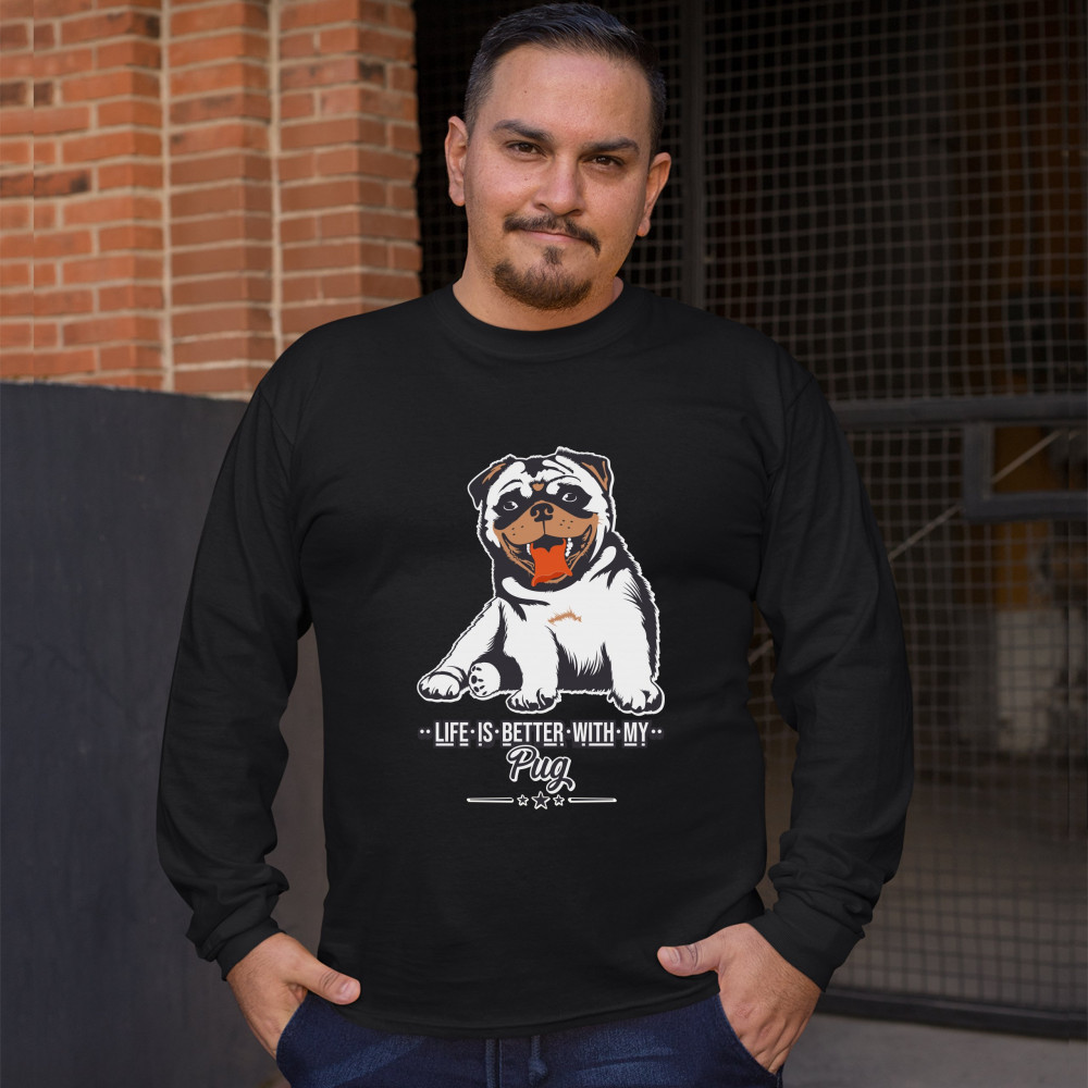 LIFE IS BETTER WITH MY PUG long sleeve t-shirt cute pet adorable dog breed black