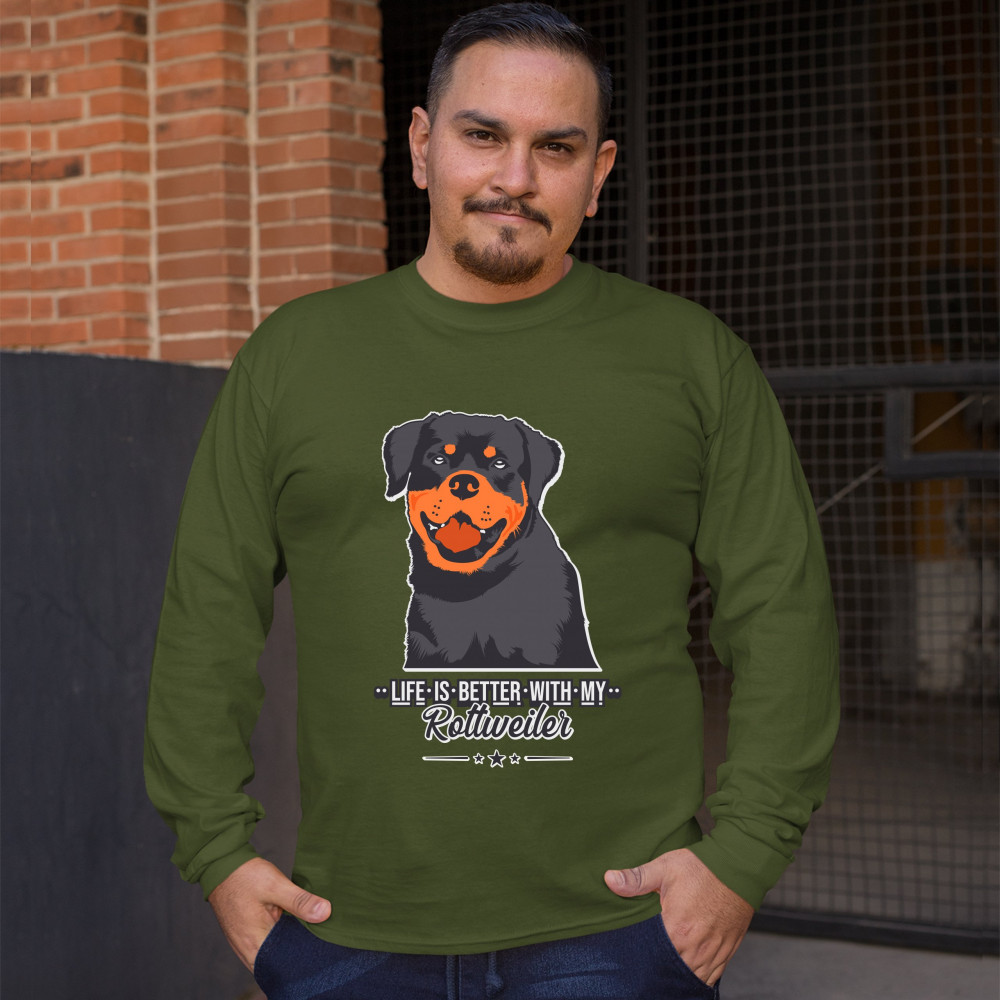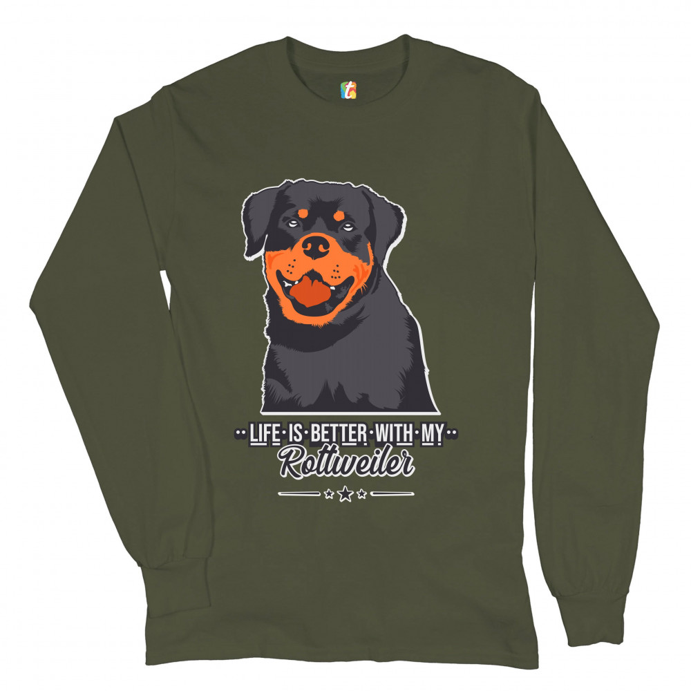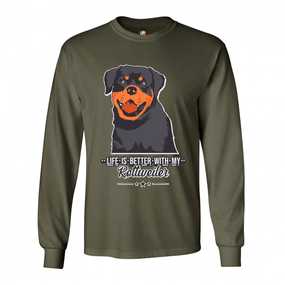 LIFE IS BETTER WITH MY ROTTWEILER long sleeve t-shirt rottie pet dog lover military green