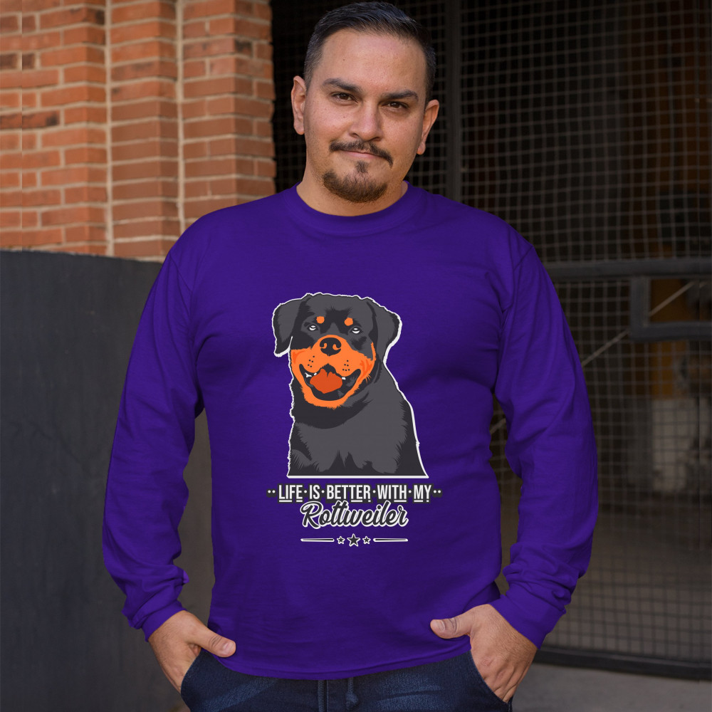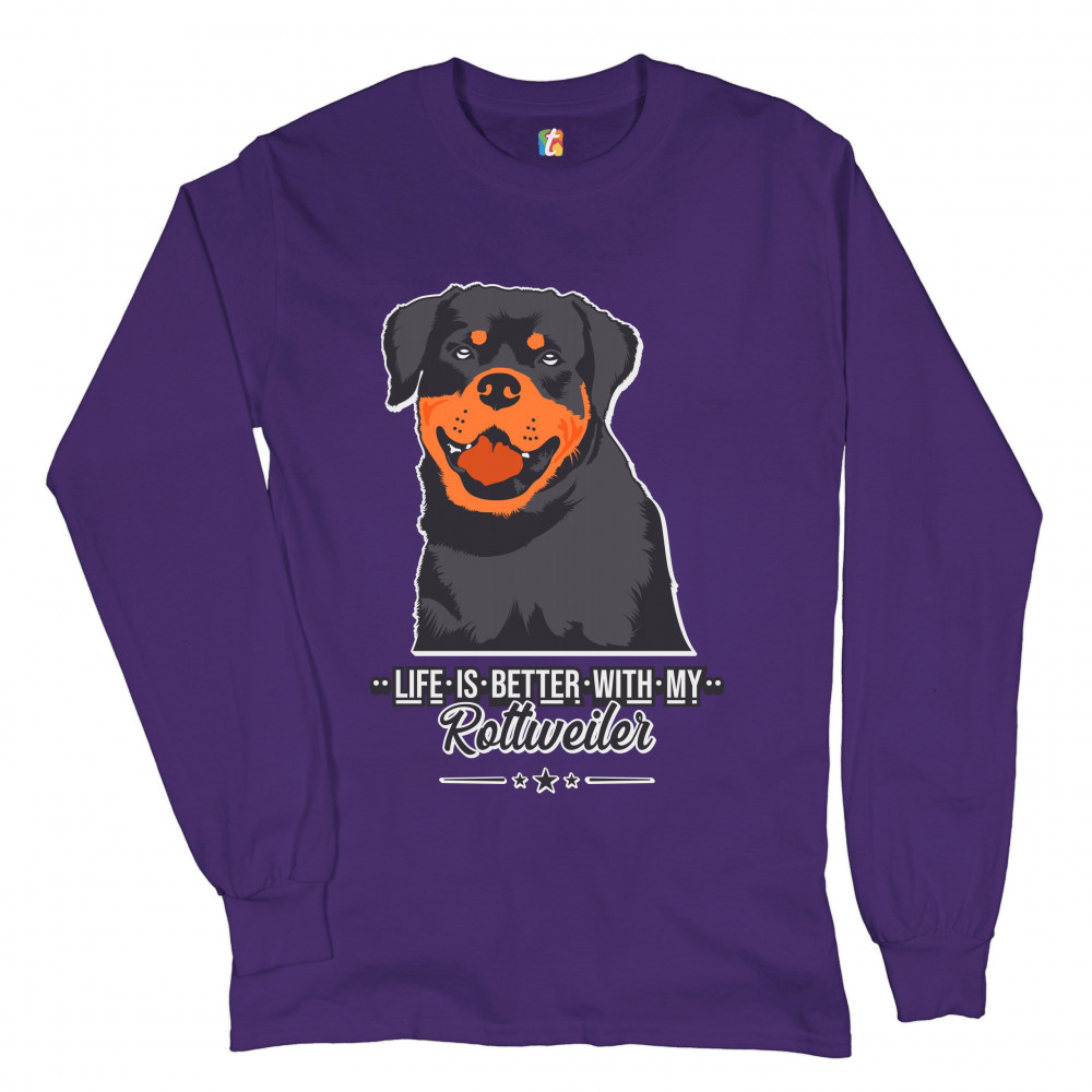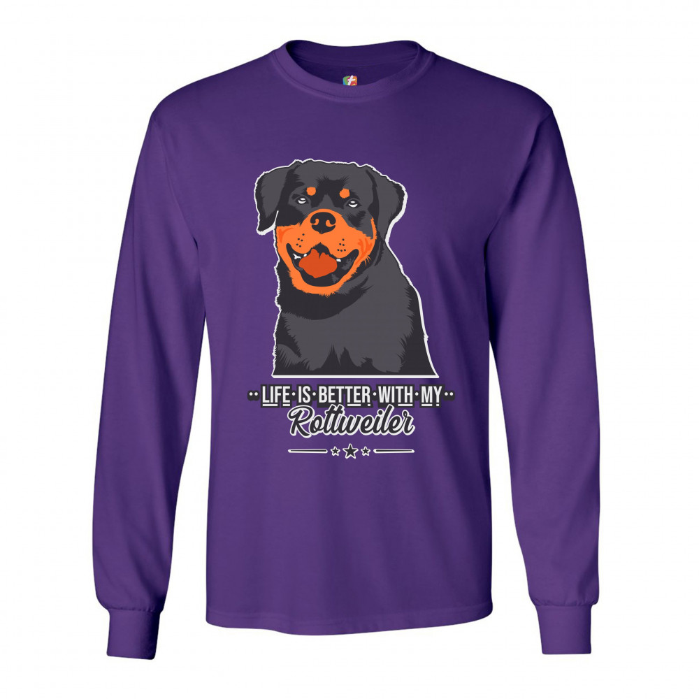 LIFE IS BETTER WITH MY ROTTWEILER long sleeve t-shirt rottie pet dog lover purple