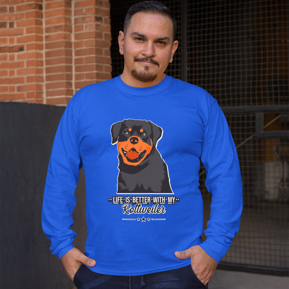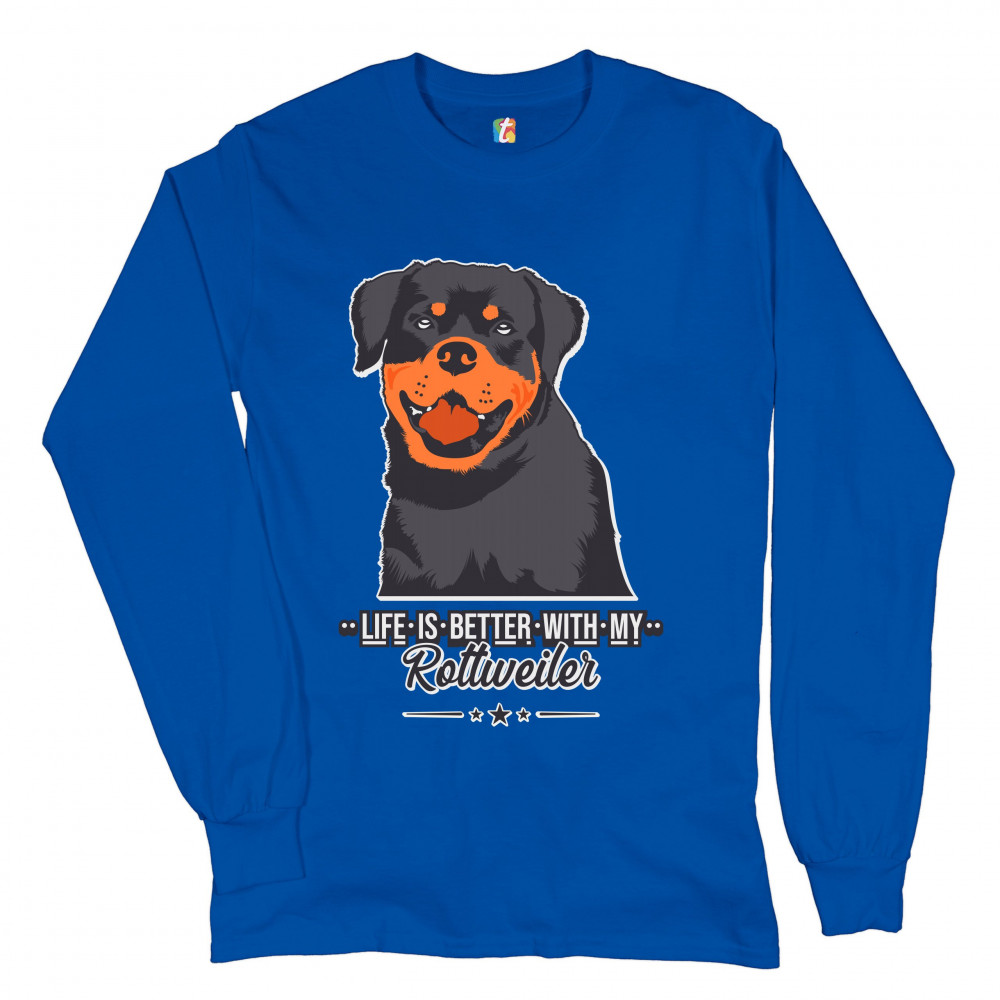 LIFE IS BETTER WITH MY ROTTWEILER long sleeve t-shirt rottie pet dog lover royal blue