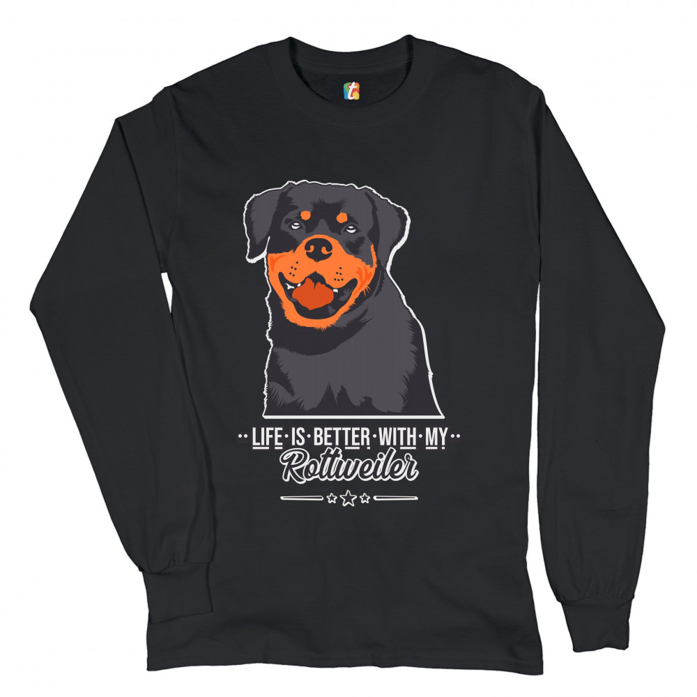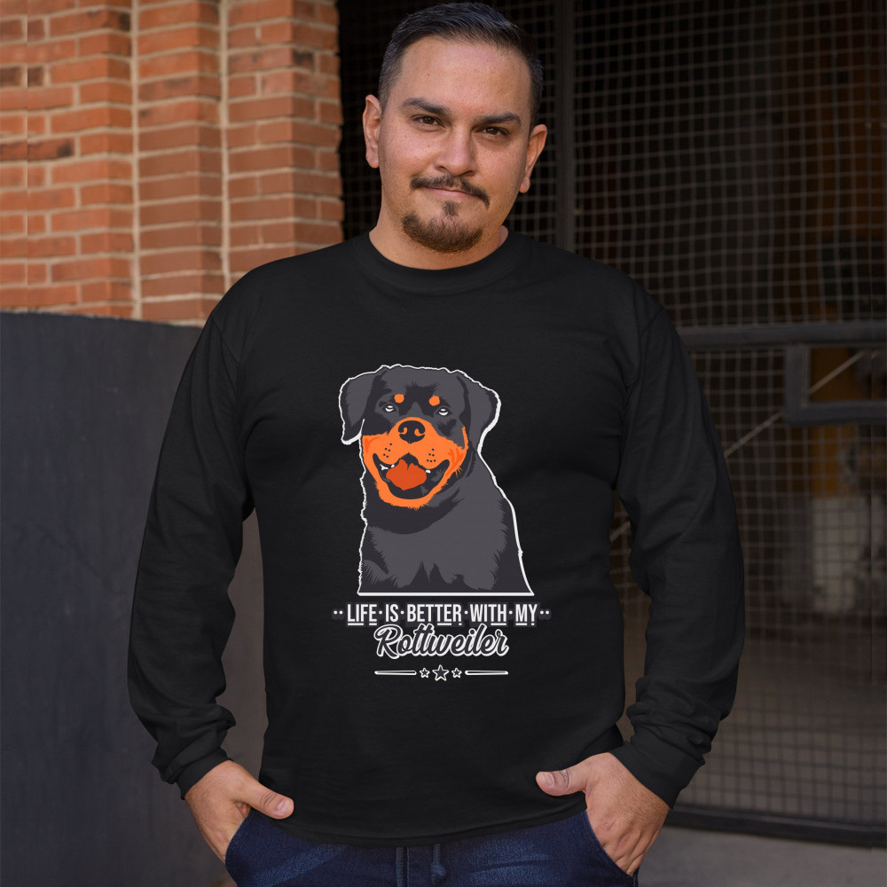 LIFE IS BETTER WITH MY ROTTWEILER long sleeve t-shirt rottie pet dog lover black