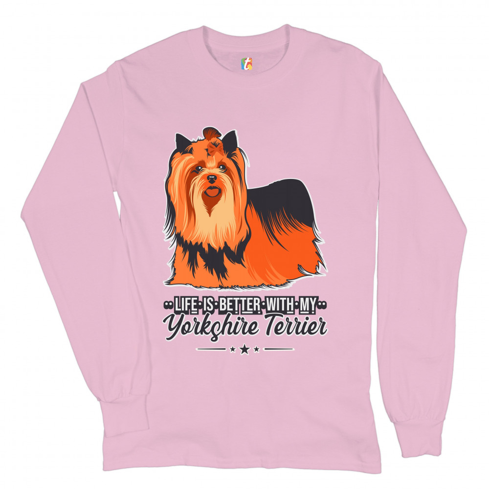 LIFE IS BETTER WITH MY YORKSHIRE TERRIER long sleeve t-shirt yorkie toy dog pink