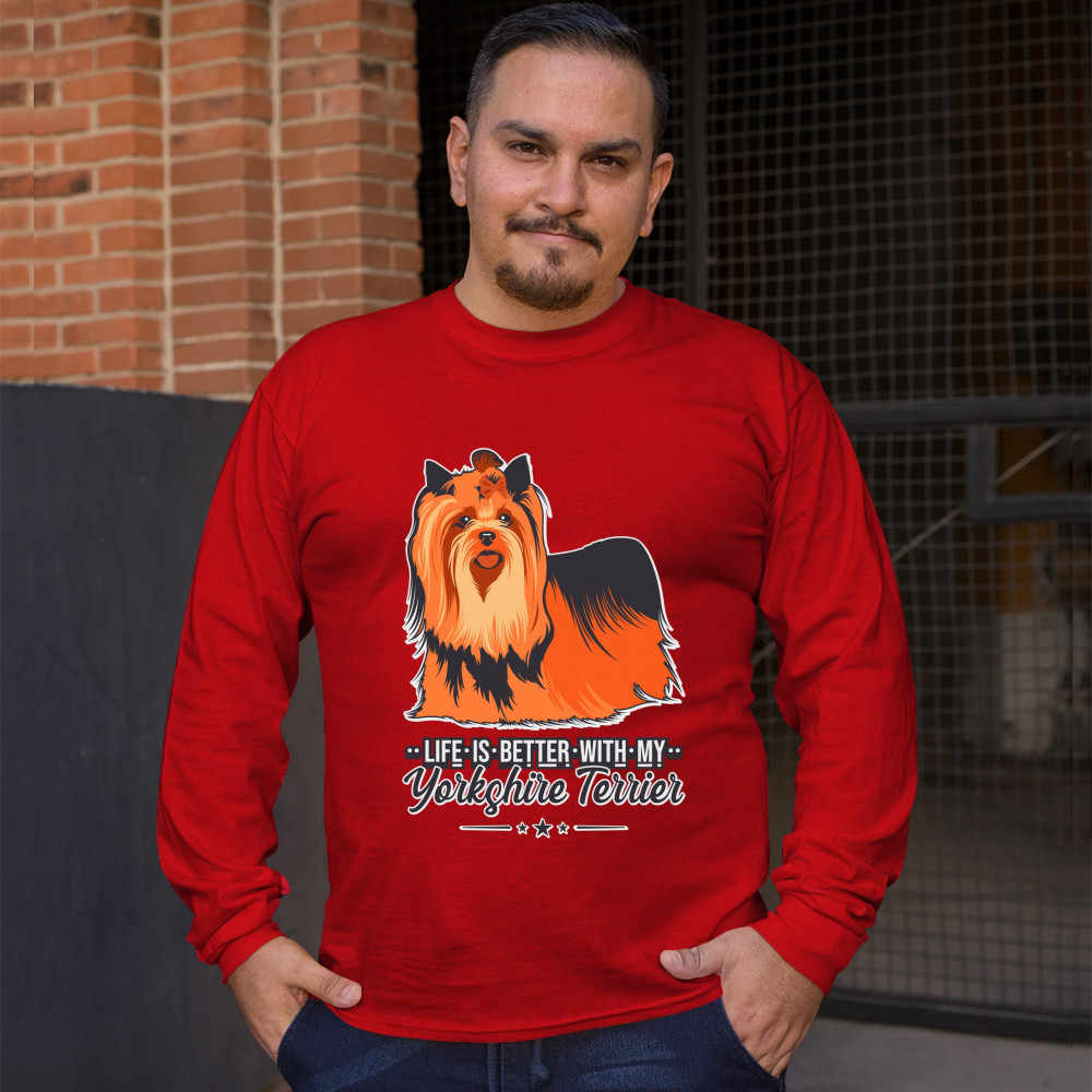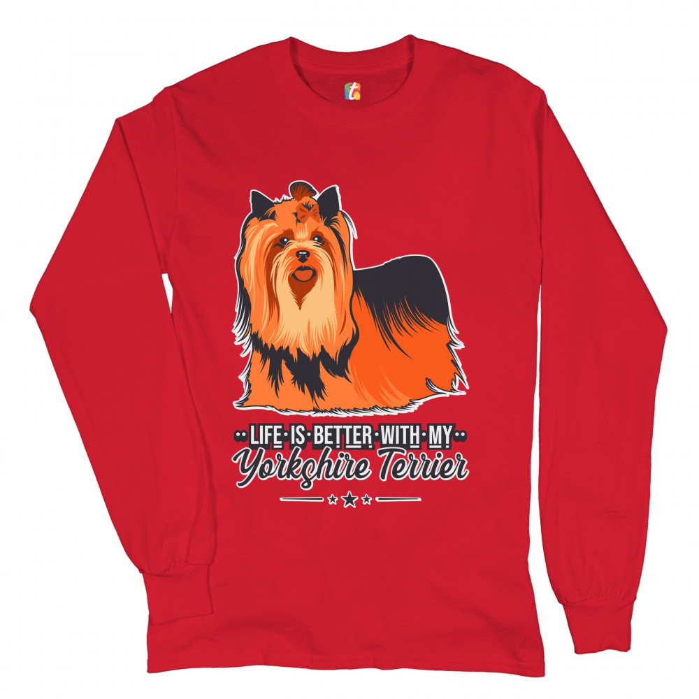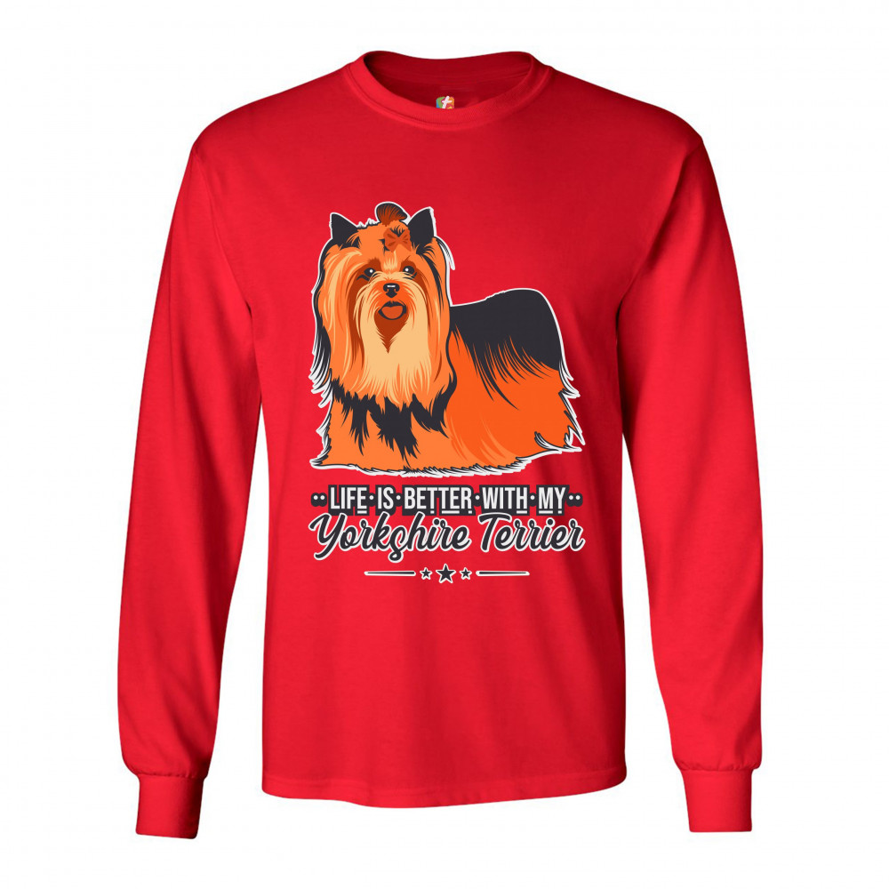 LIFE IS BETTER WITH MY YORKSHIRE TERRIER long sleeve t-shirt yorkie toy dog red