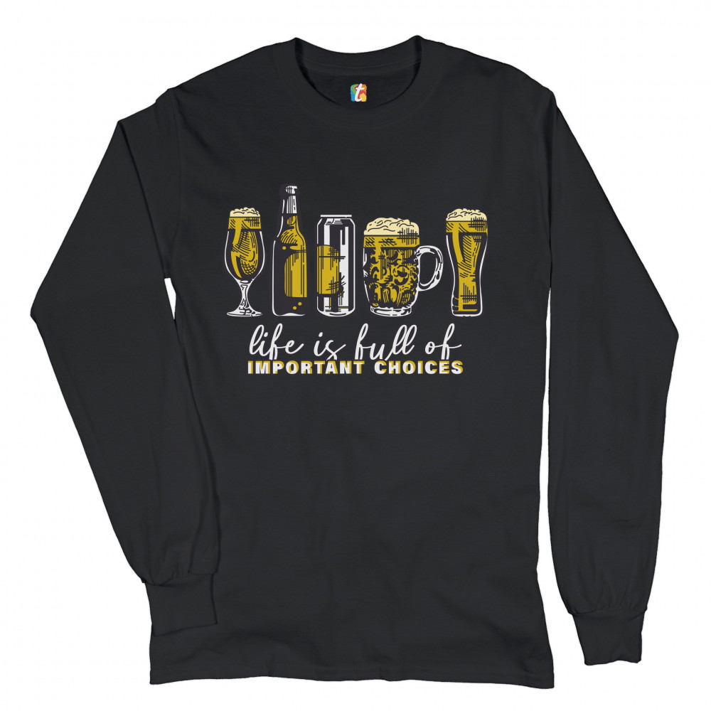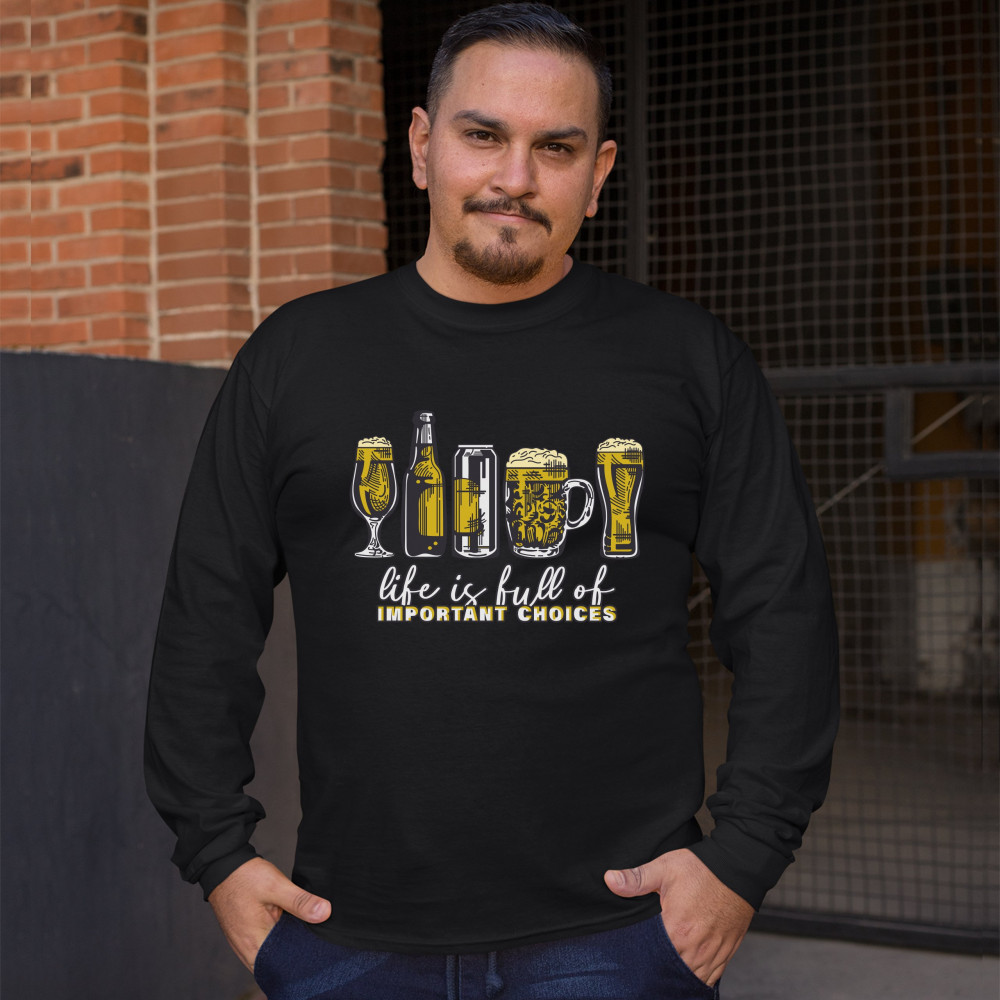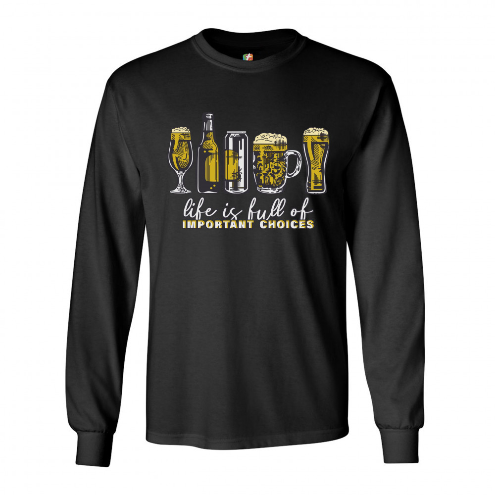 LIFE IS FULL OF IMPORTANT CHOICES long sleeve t-shirt funny beer drinking ipa black