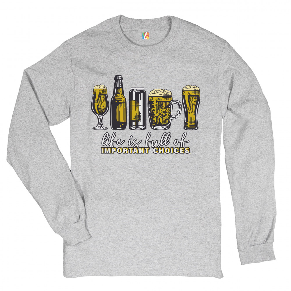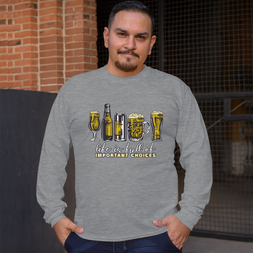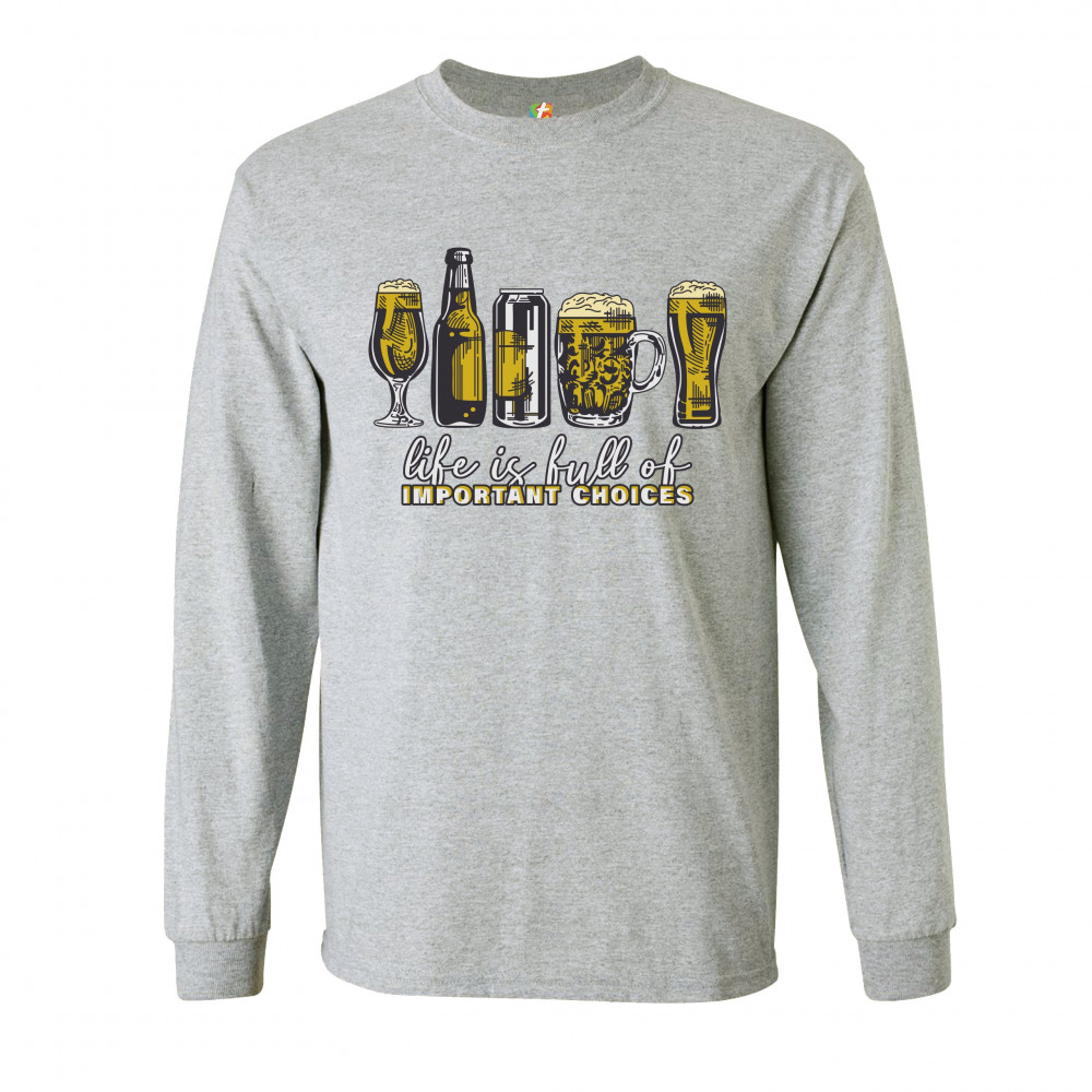LIFE IS FULL OF IMPORTANT CHOICES long sleeve t-shirt funny beer drinking ipa gray