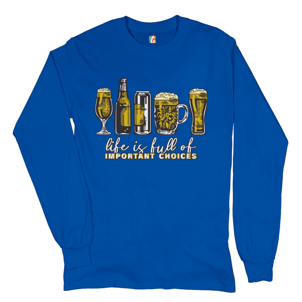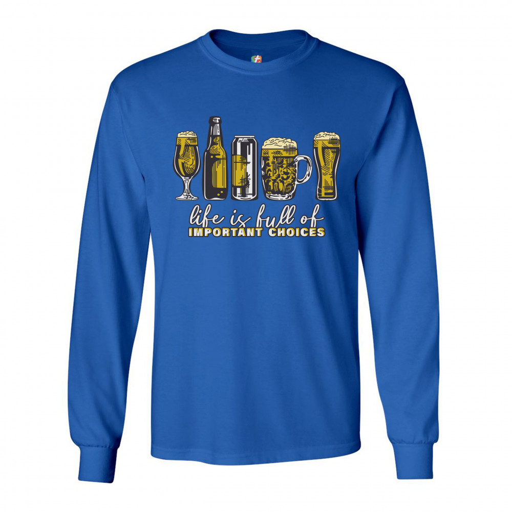 LIFE IS FULL OF IMPORTANT CHOICES long sleeve t-shirt funny beer drinking ipa royal blue