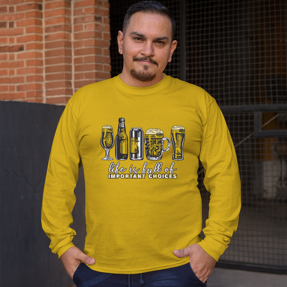 LIFE IS FULL OF IMPORTANT CHOICES long sleeve t-shirt funny beer drinking ipa yellow