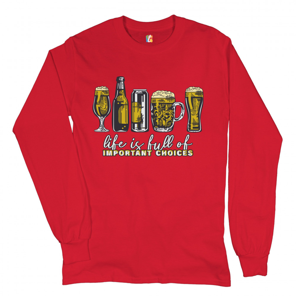 LIFE IS FULL OF IMPORTANT CHOICES long sleeve t-shirt funny beer drinking ipa red