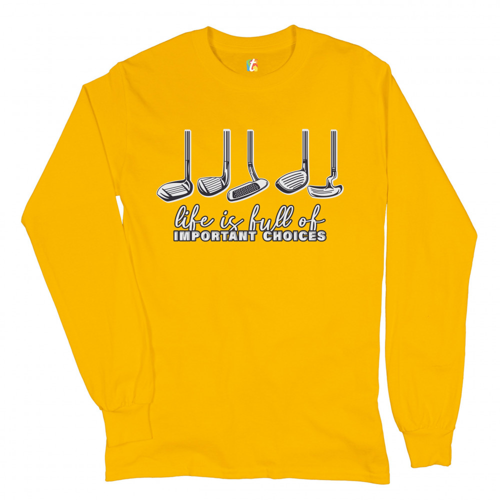 LIFE IS FULL OF IMPORTANT CHOICES long sleeve t-shirt funny golf clubs golfing yellow