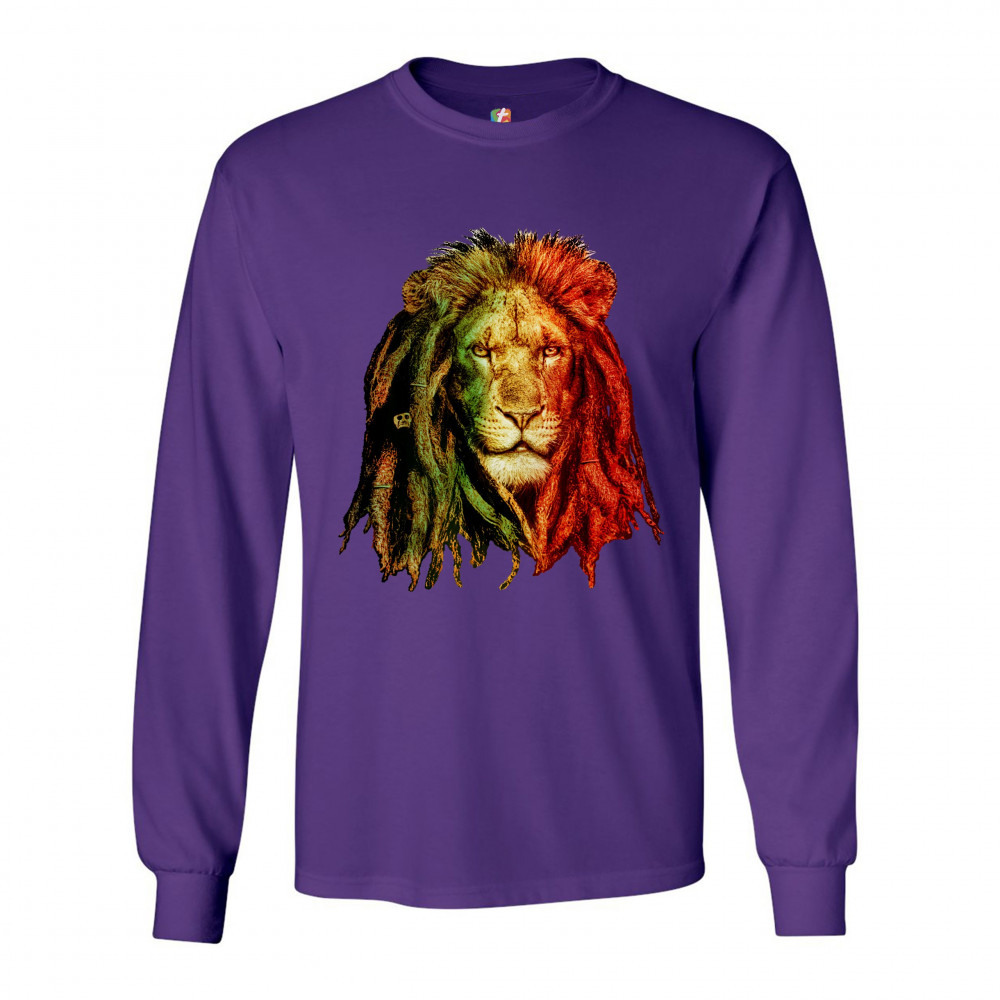 LION WITH DREADLOCKS long sleeve t-shirt rastafari jah jamaica marijuana 420 purple