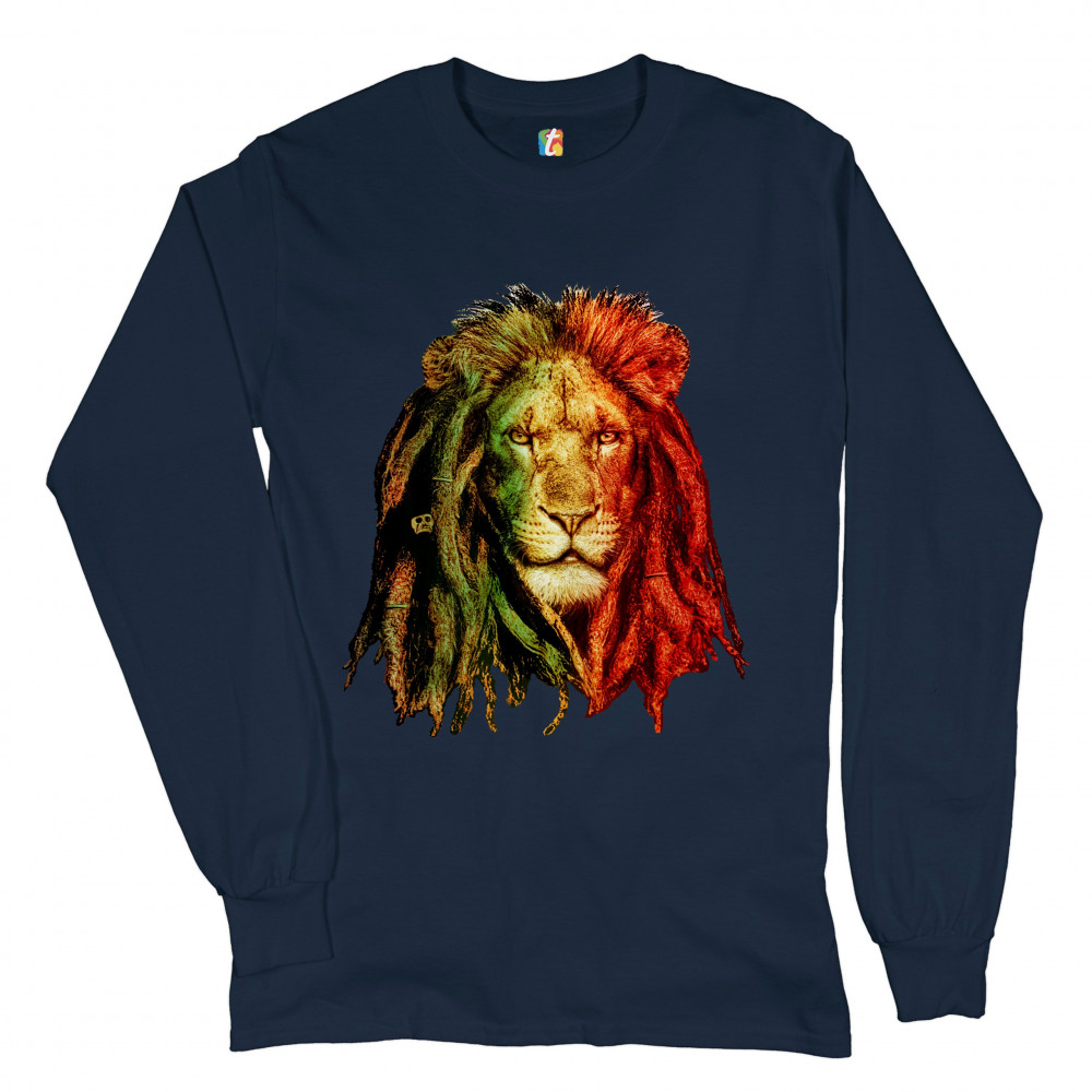 LION WITH DREADLOCKS long sleeve t-shirt rastafari jah jamaica marijuana 420 navy blue