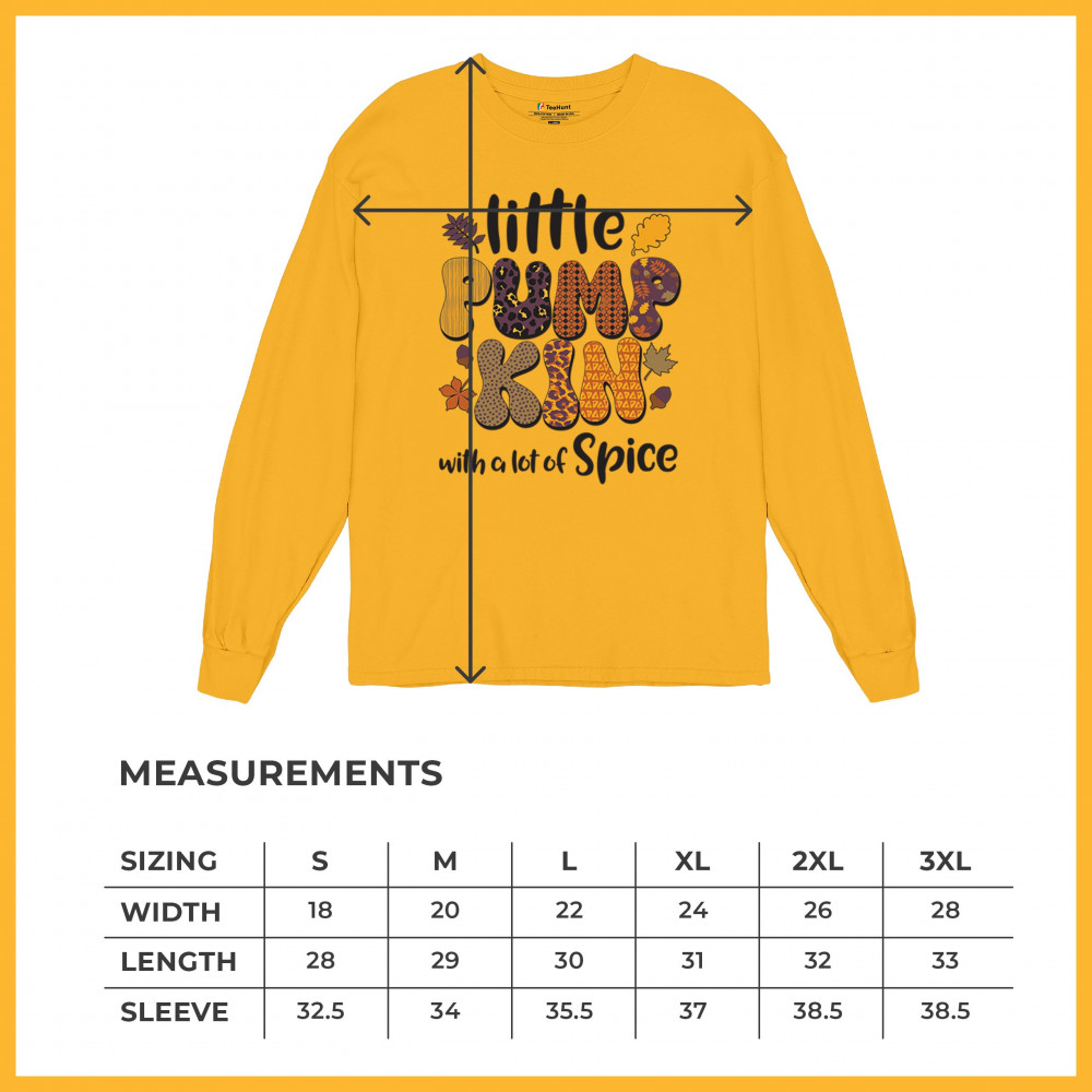 Spice up your fall wardrobe with this 'Little Pumpkin with a Lot of Spice' design, perfect for adding a festive touch to your seasonal outings. Whether you're visiting the pumpkin patch or enjoying a cozy autumn night, this playful design is a fun and vibrant way to embrace the fall spirit. Ideal for Thanksgiving, Halloween, and beyond!