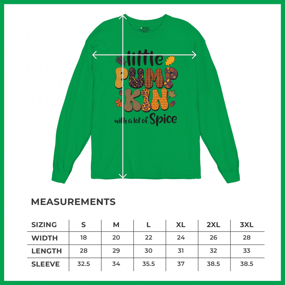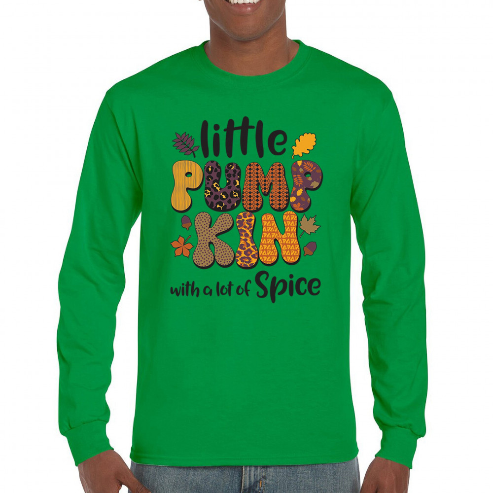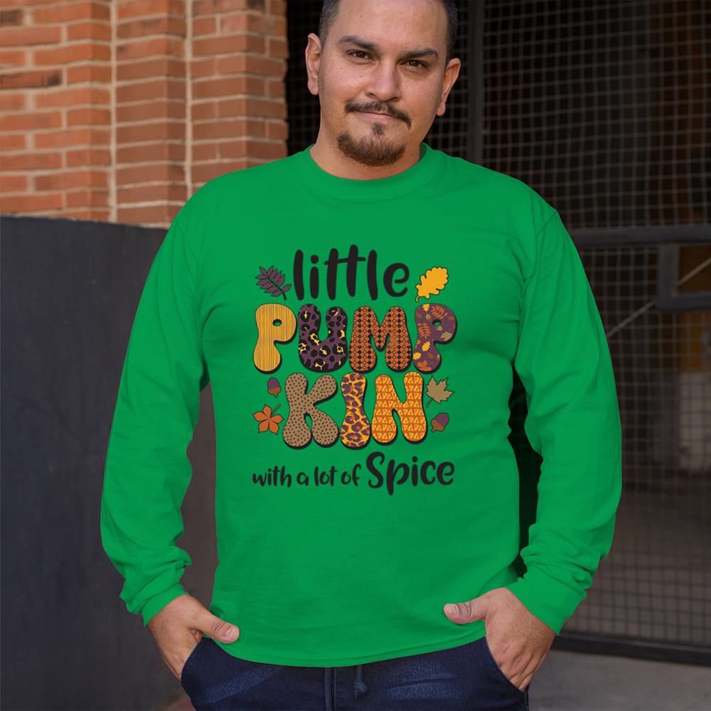 Spice up your fall wardrobe with this 'Little Pumpkin with a Lot of Spice' design, perfect for adding a festive touch to your seasonal outings. Whether you're visiting the pumpkin patch or enjoying a cozy autumn night, this playful design is a fun and vibrant way to embrace the fall spirit. Ideal for Thanksgiving, Halloween, and beyond!