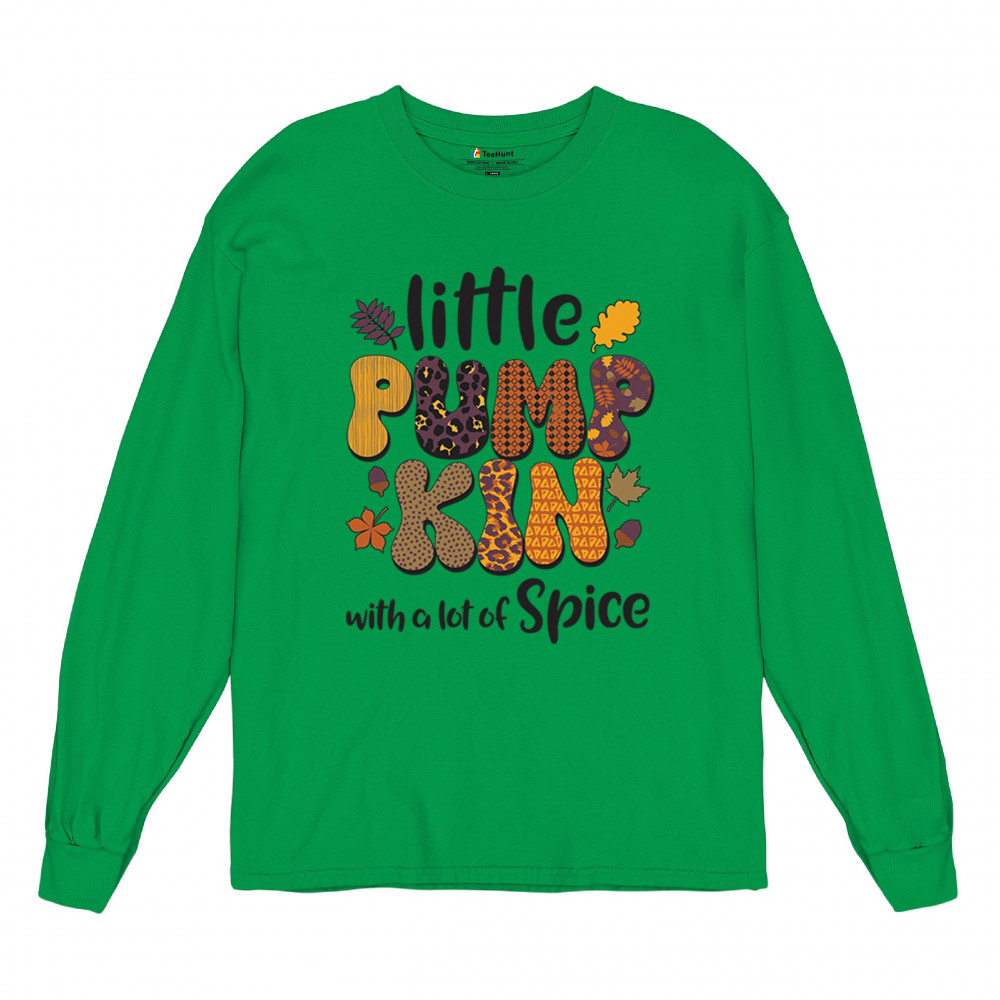 Celebrate the fall season with this playful 'Little Pumpkin with a Lot of Spice' design, perfect for festive gatherings and pumpkin patch visits.